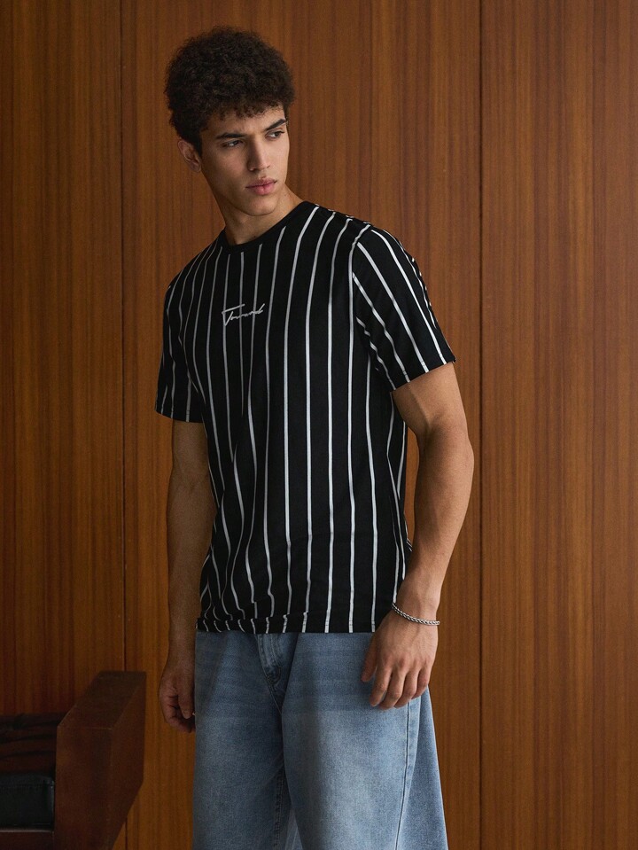 Guys Letter Graphic Striped Tee