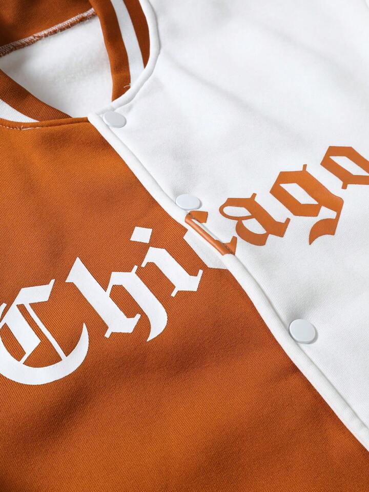 Guys Letter Graphic Two Tone Drop Shoulder Jacket Without Hoodie