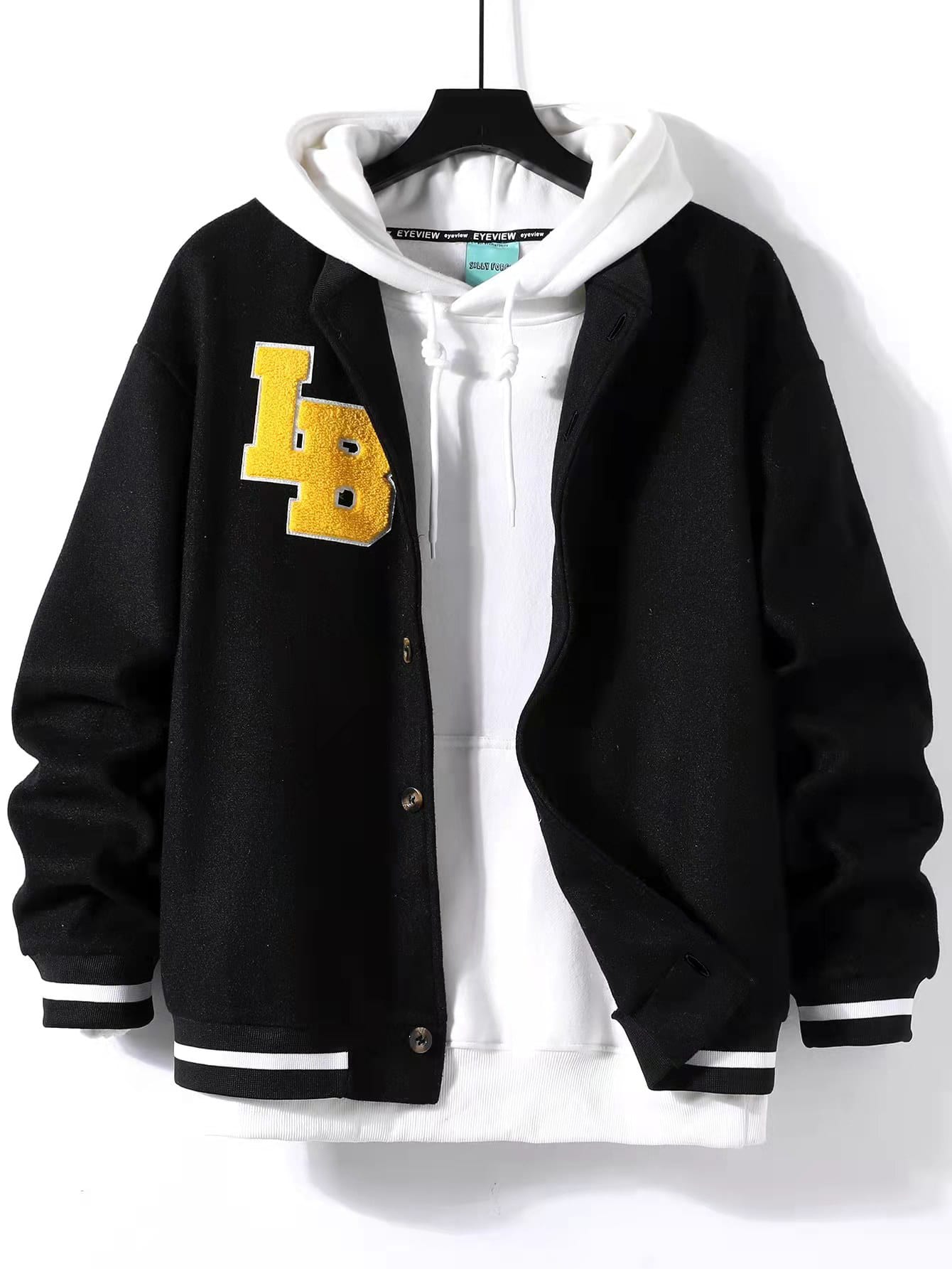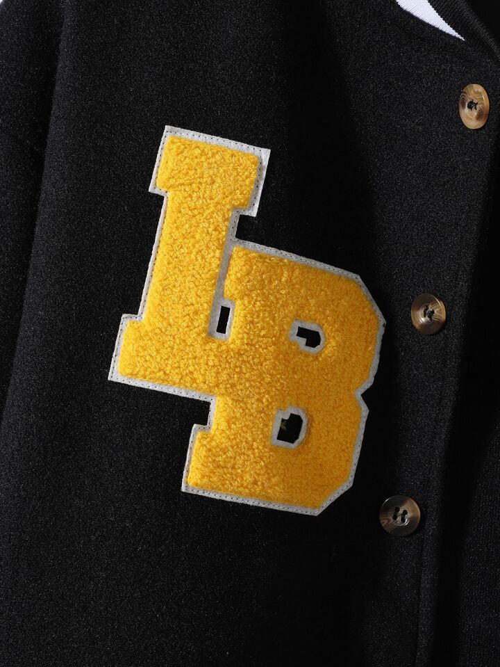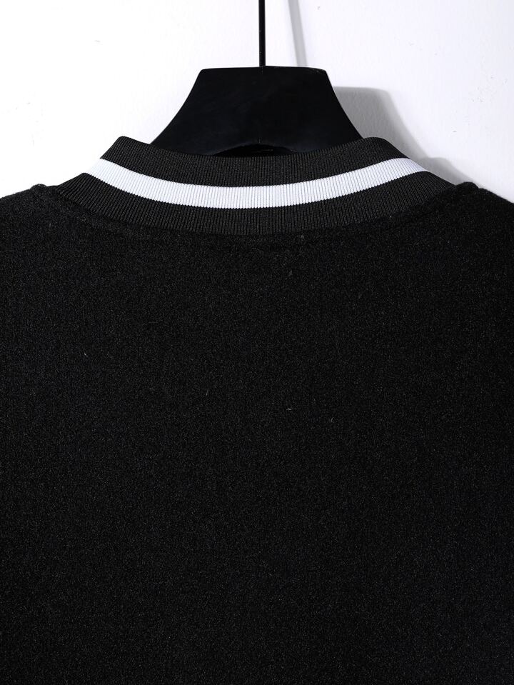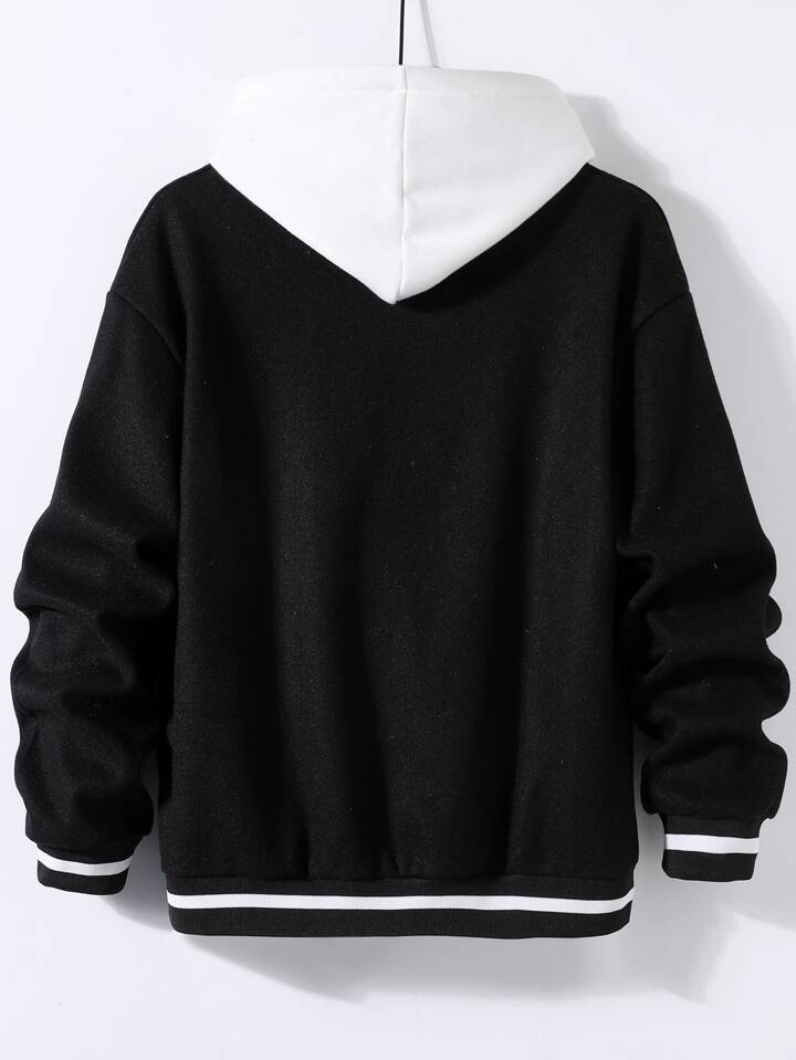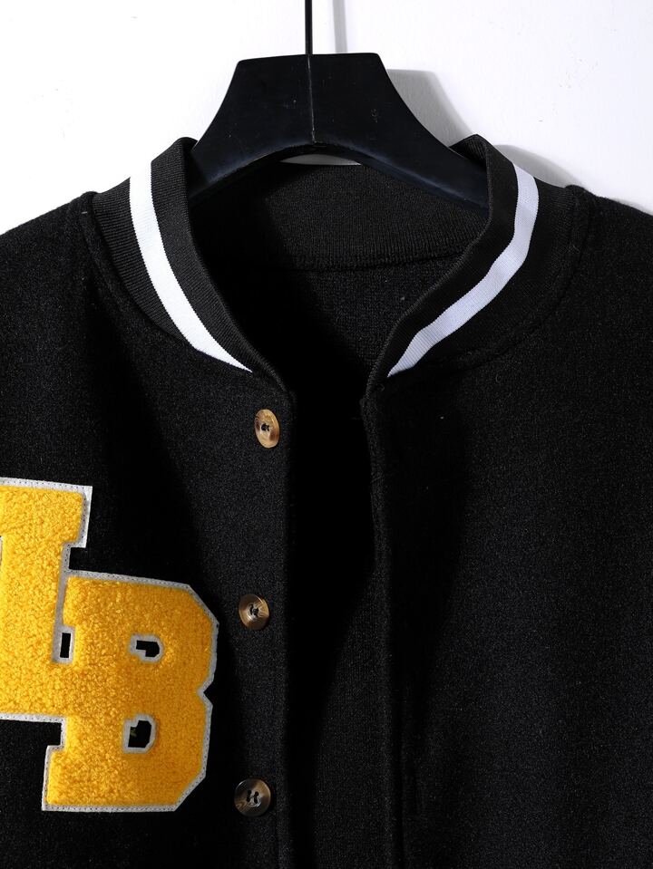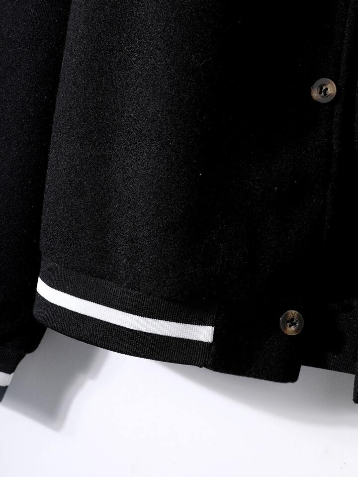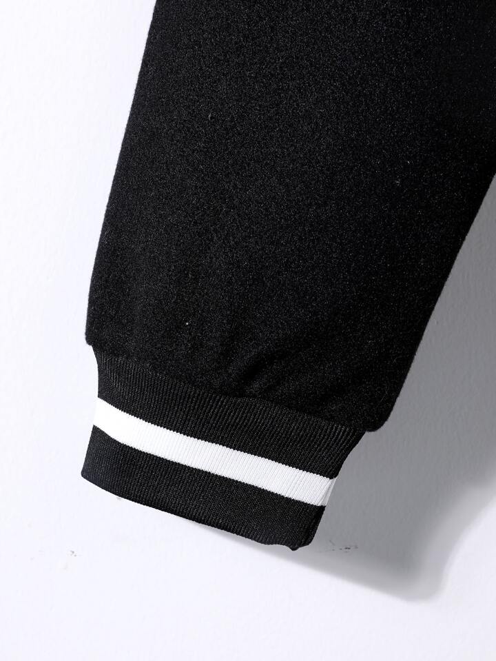 Guys Letter Patch Detail Drop Shoulder Striped Trim Bomber Jacket Without Hoodie