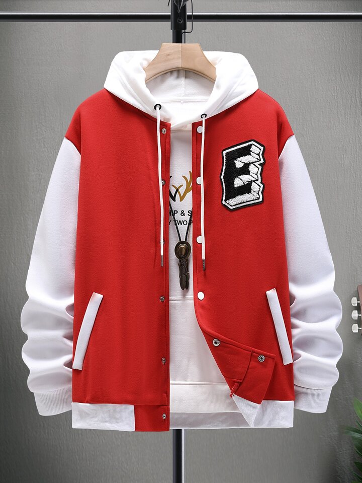 Guys Letter Patched Colorblock Drop Shoulder Coat Without Hoodie