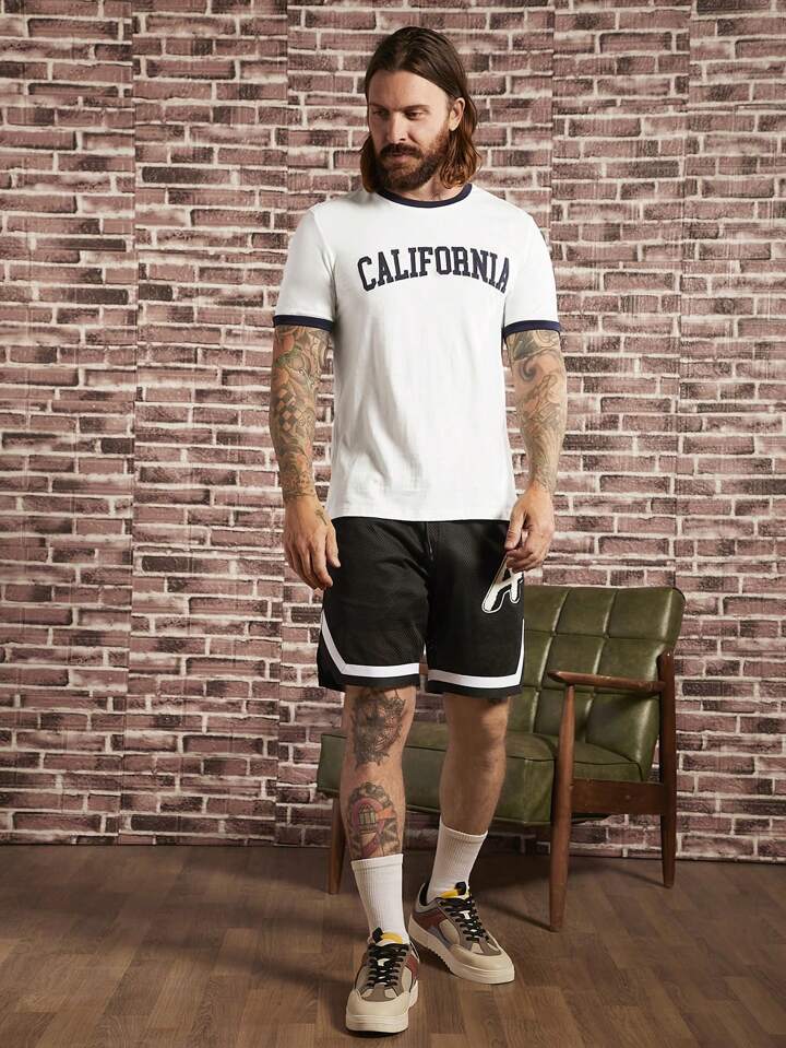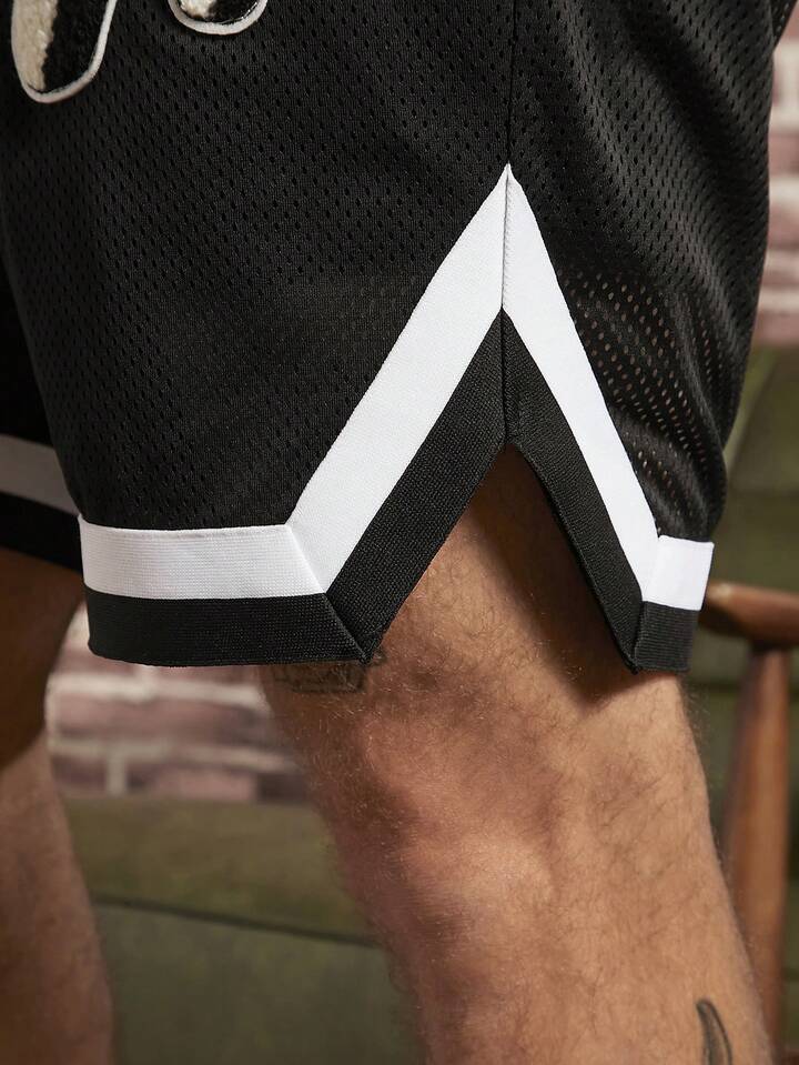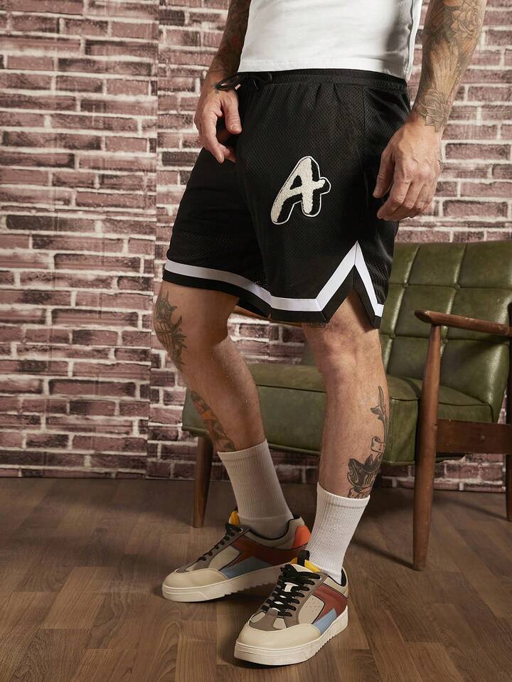 Guys Letter Patched Contrast Tape Drawstring Waist Shorts