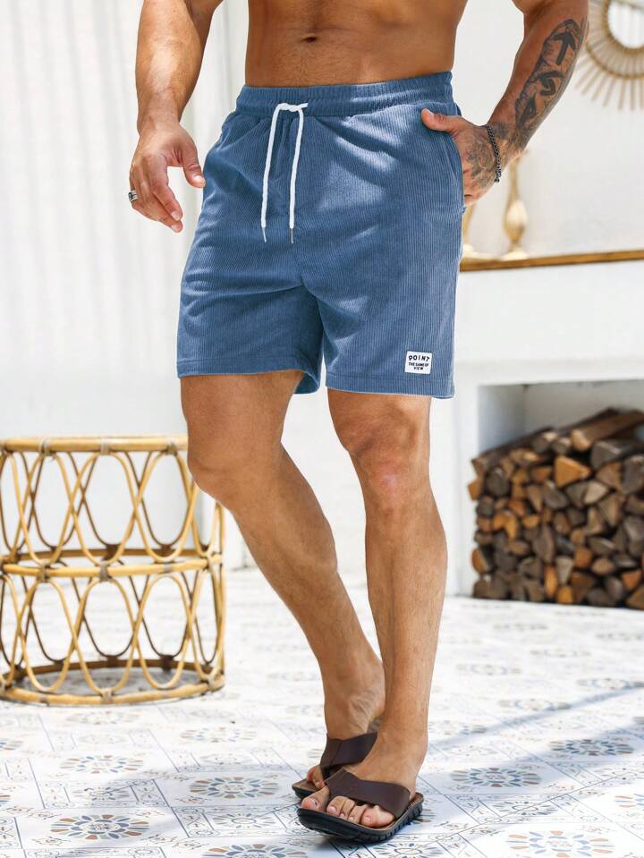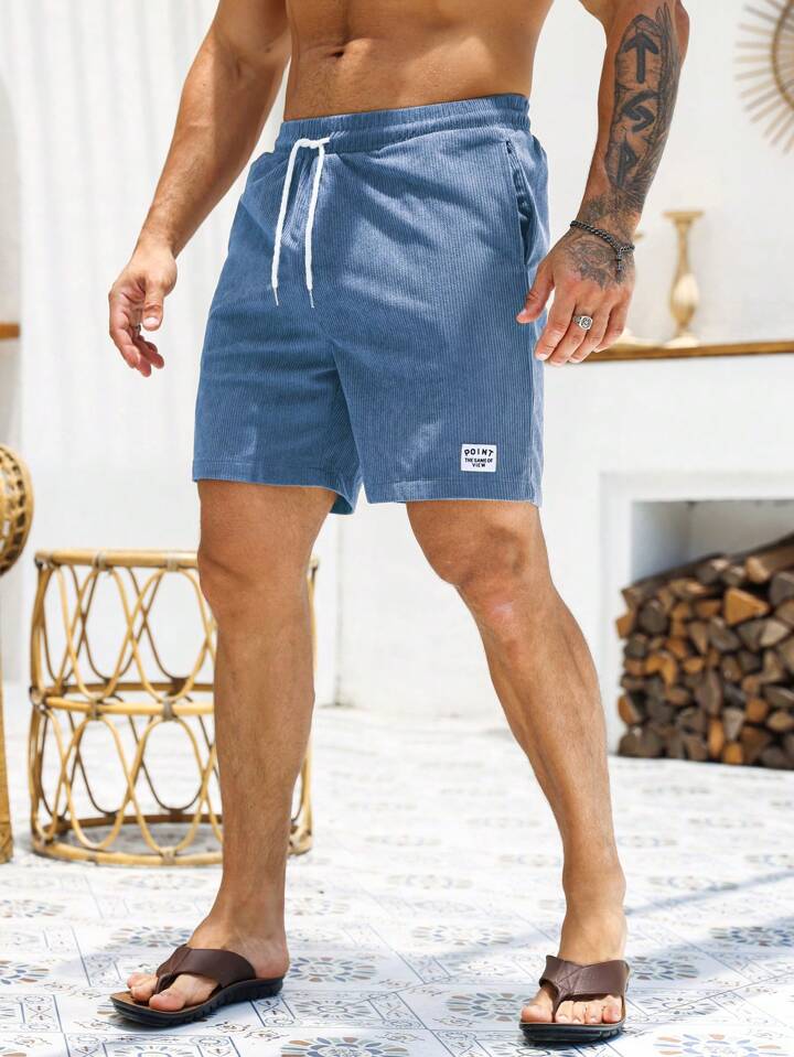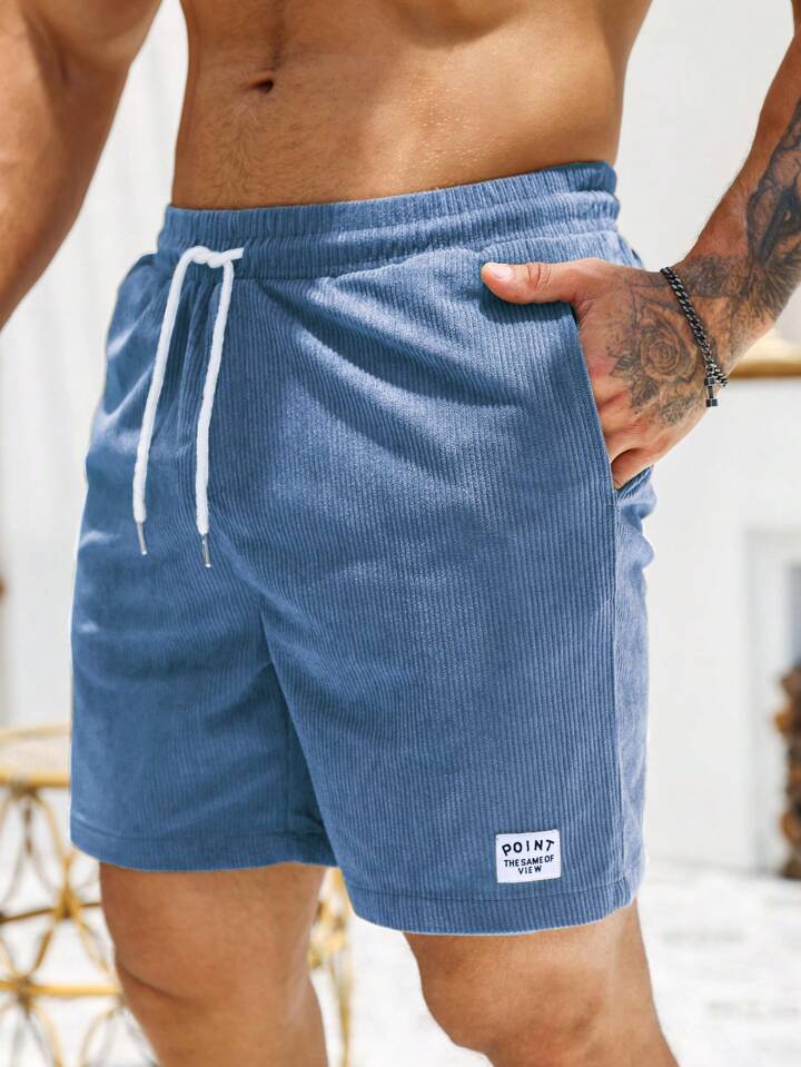 Guys Letter Patched Detail Drawstring Waist Corduroy Shorts