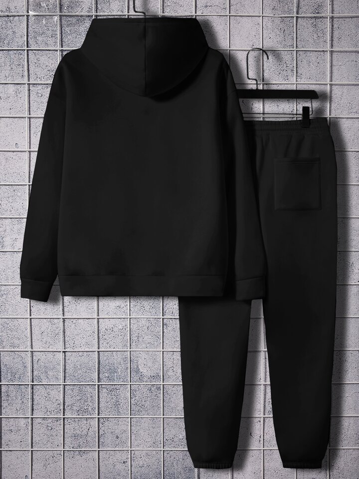 Guys Letter Patched Kangaroo Pocket Drawstring Hoodie & Sweatpants