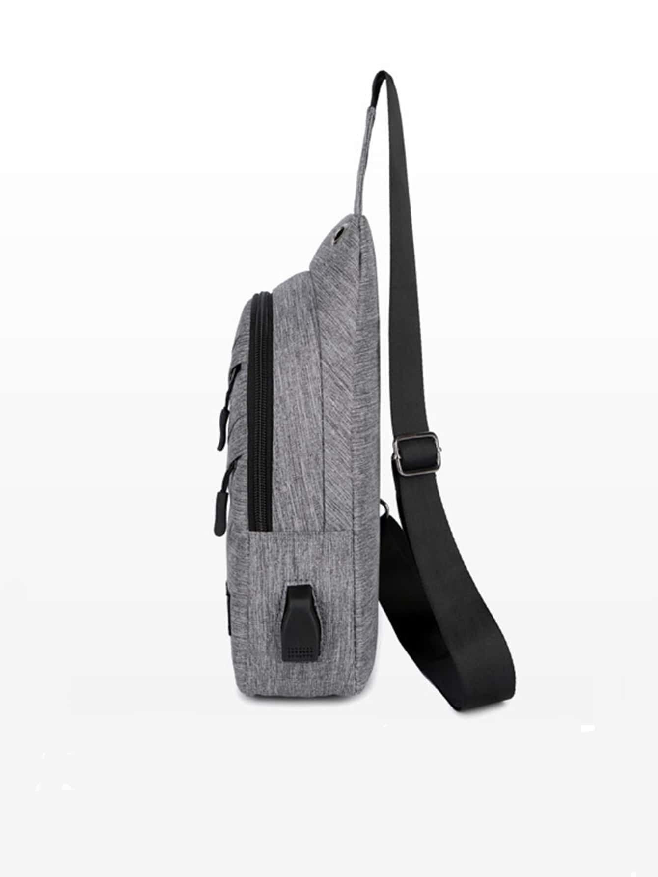 Guys Mini Letter Patch Decor Earphone Hole Detail Sling Bag