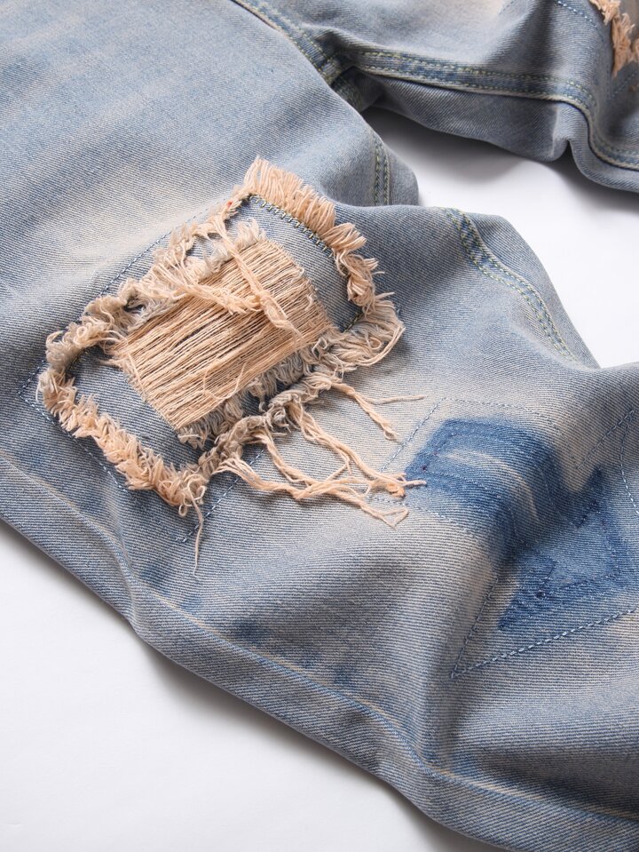 Guys Patched Detail Ripped Frayed Rag Stitching Jeans