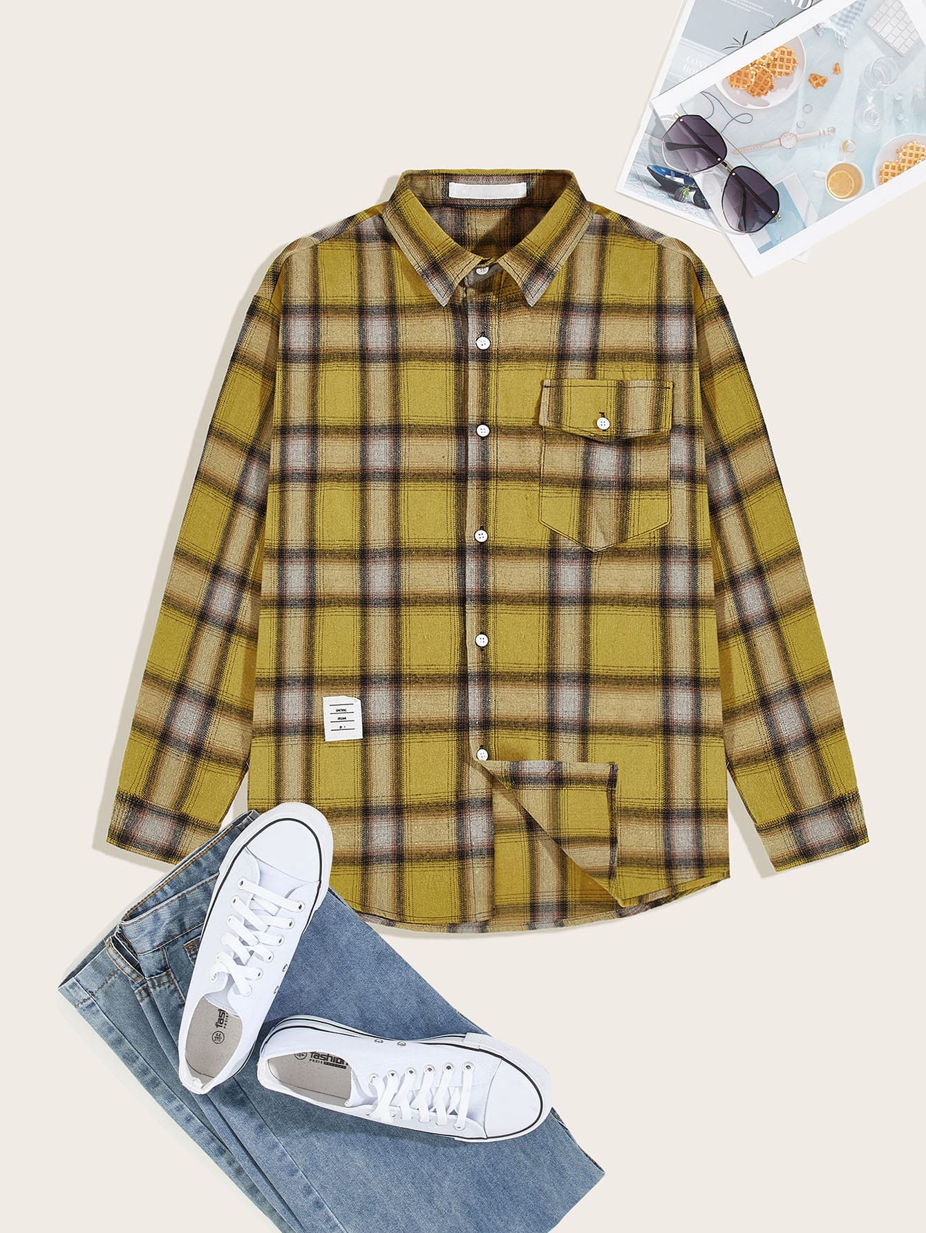 Guys Plaid Flap Pocket Front Button Up Shirt