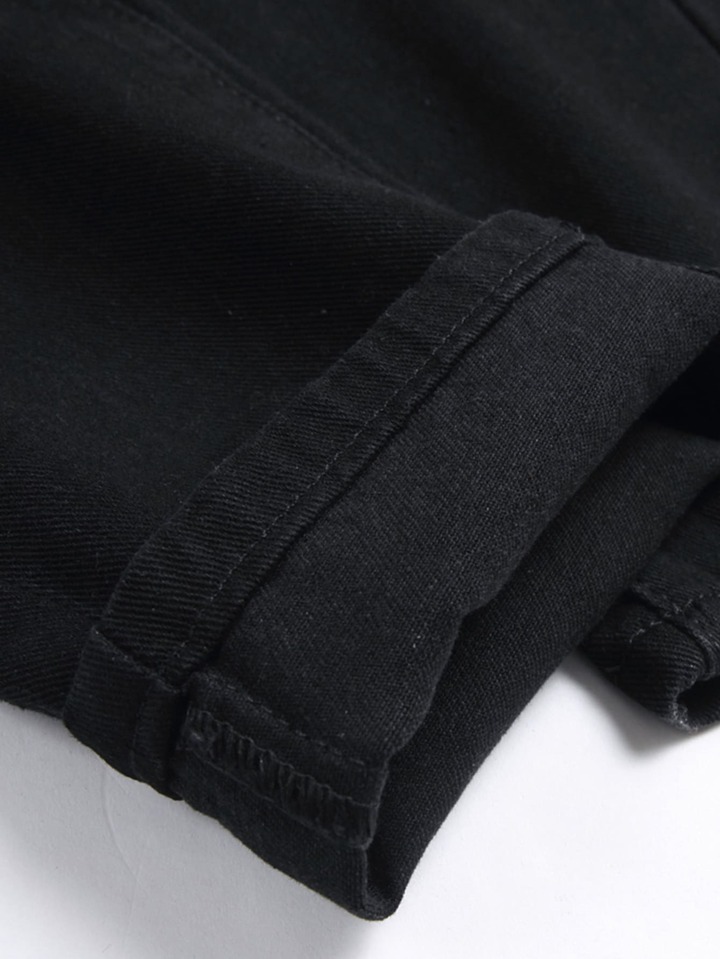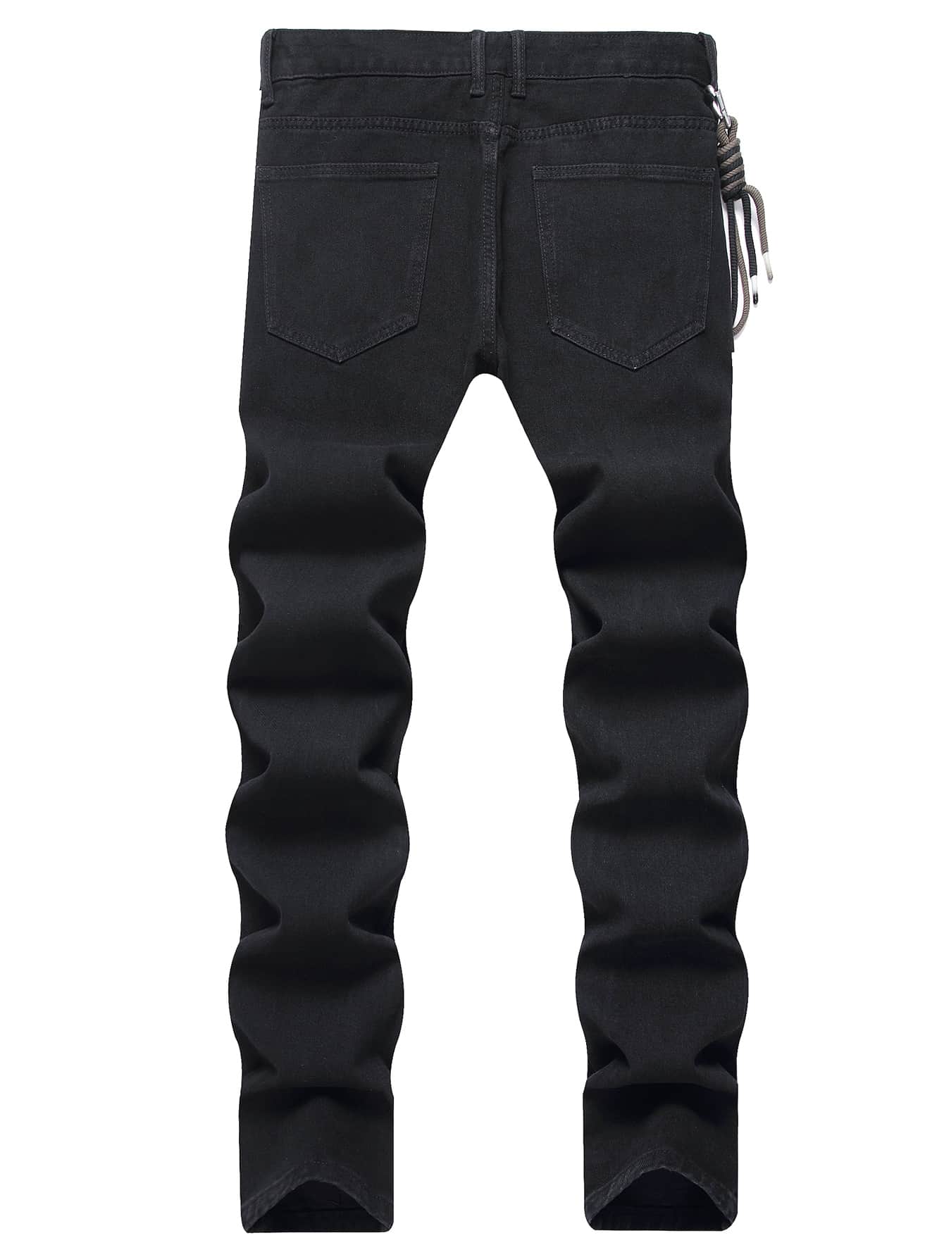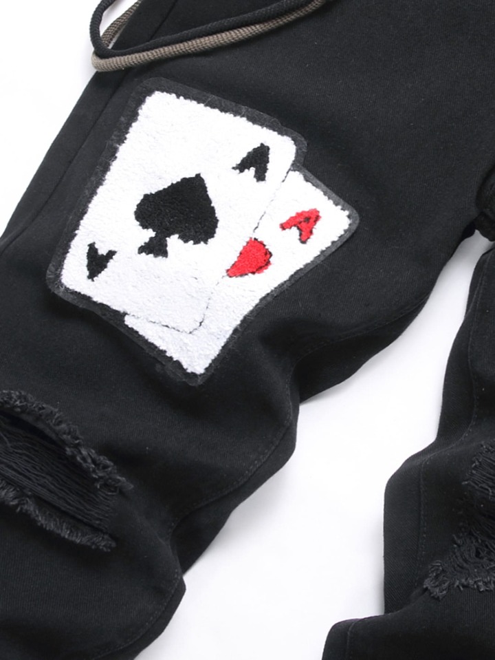 Guys Playing Card Print Ripped Frayed Chain Decor Jeans