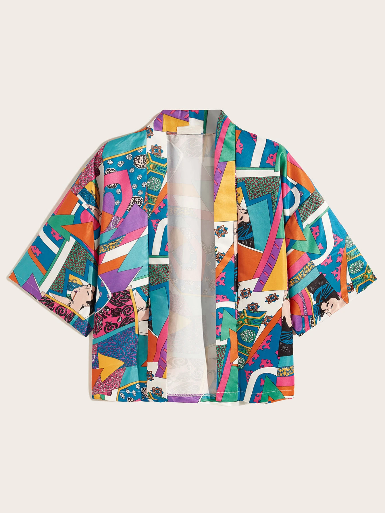 Guys Random Abstract Print Open Front Shirt