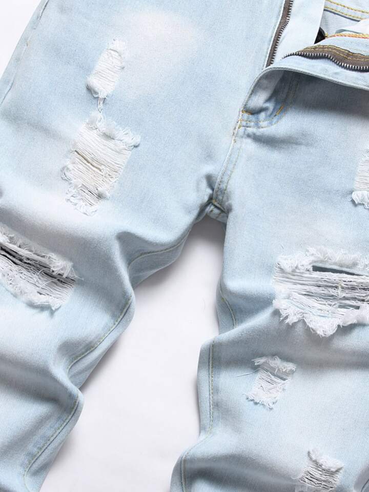 Guys Ripped Frayed Chain Detail Skinny Jeans