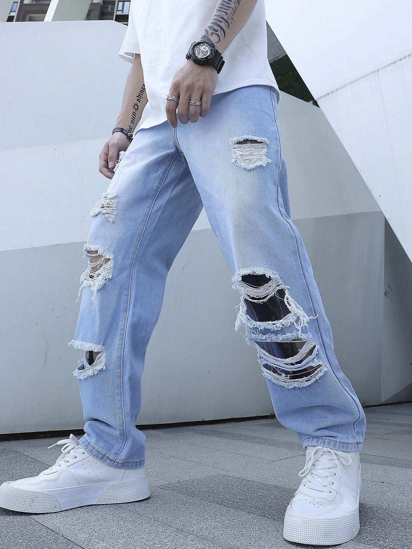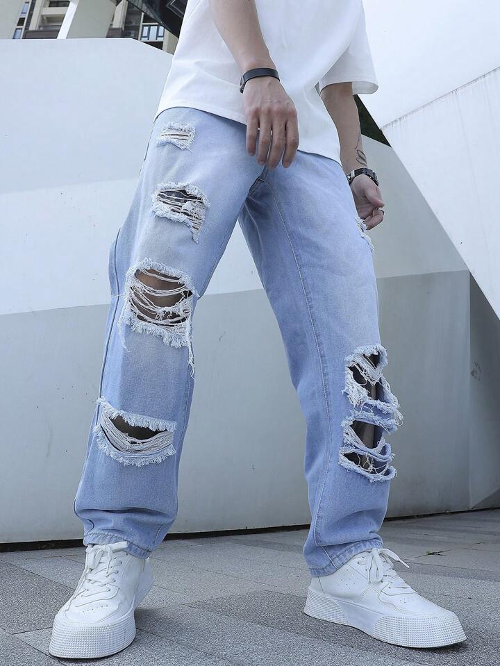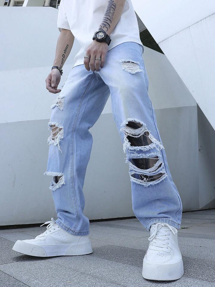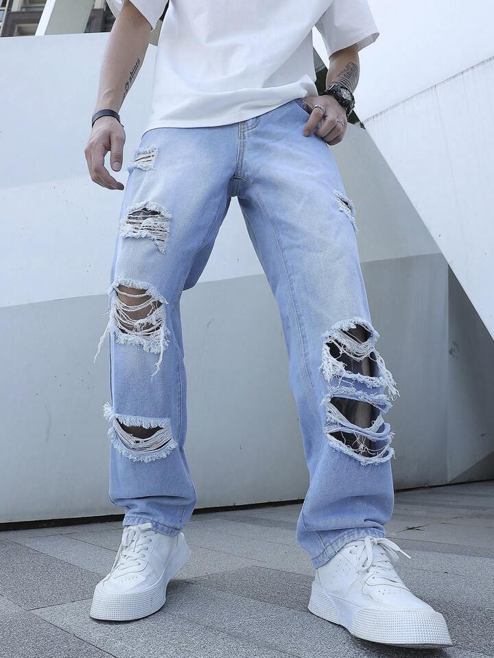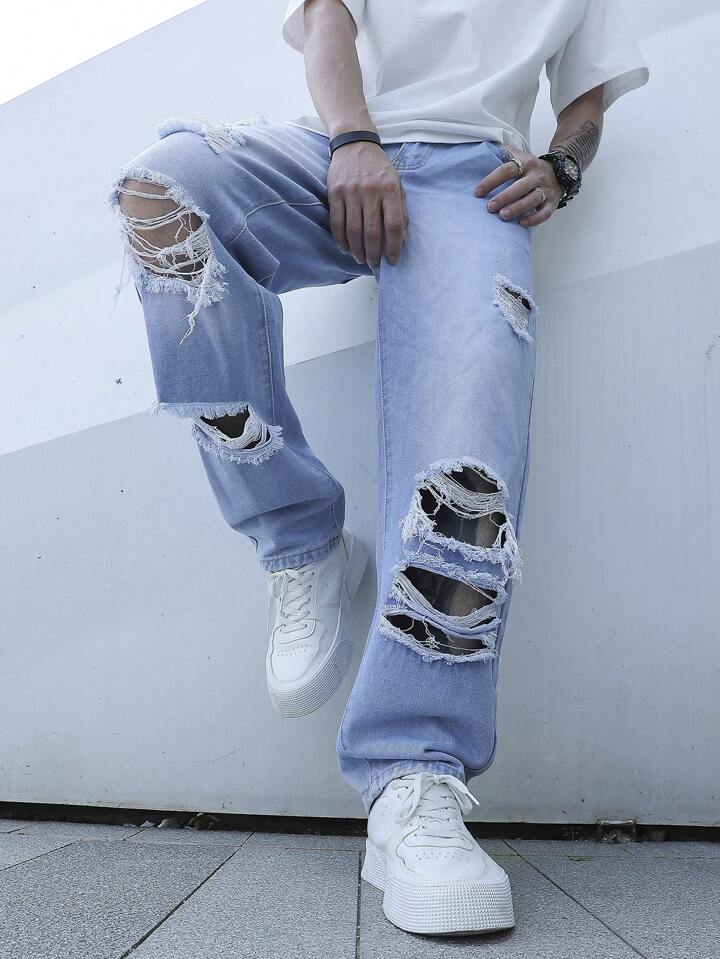 Guys Ripped Frayed Straight Leg Jeans