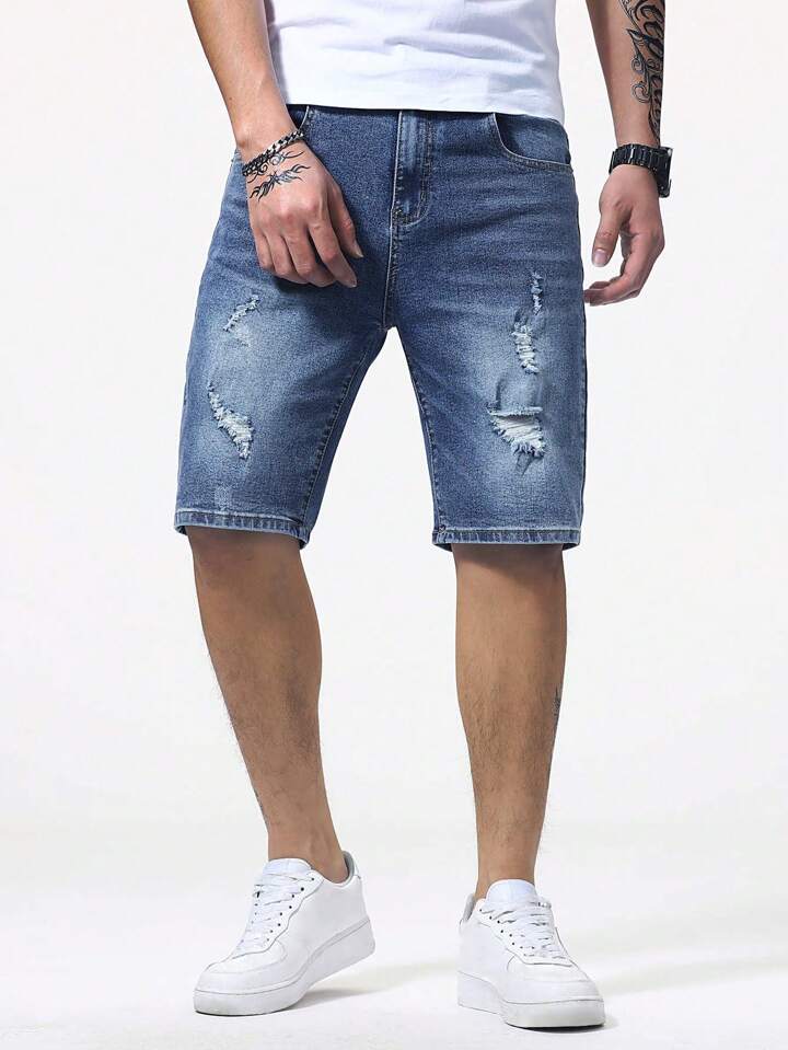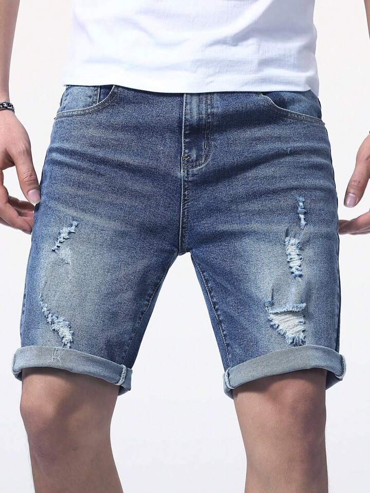 Guys Ripped Rolled Hem Bermuda Denim Shorts