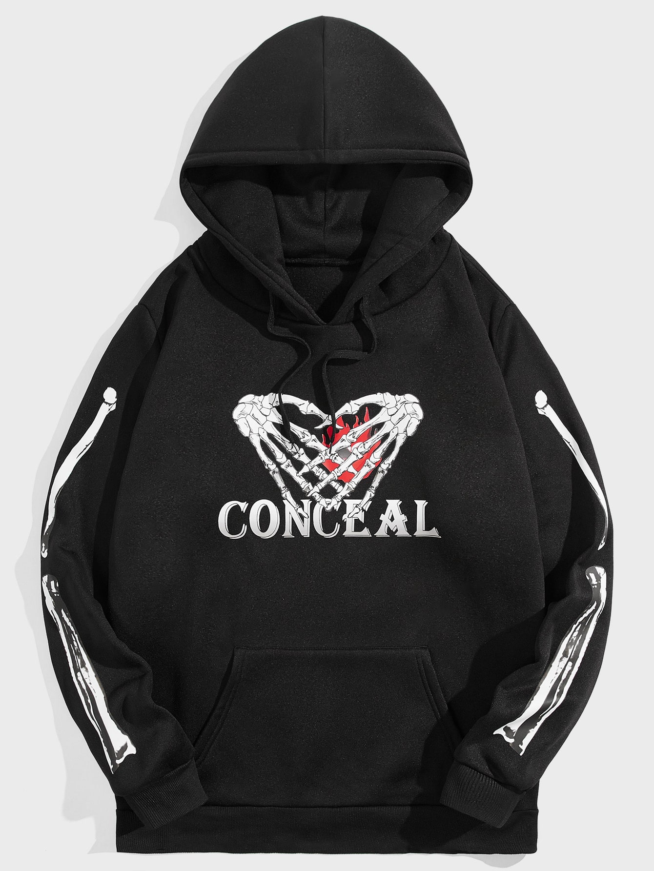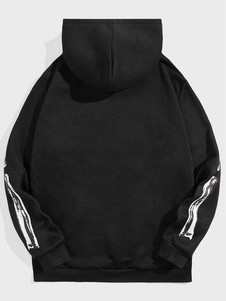 Guys Skeleton & Letter Graphic Kangaroo Pocket Drawstring Hoodie