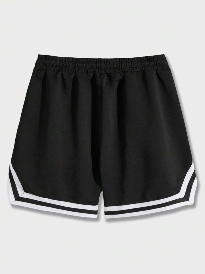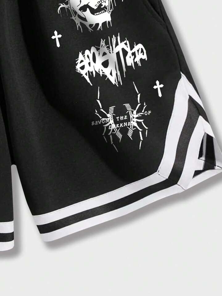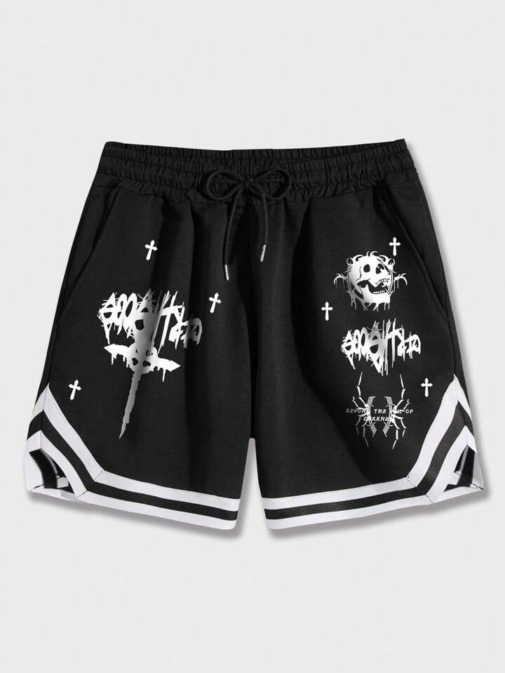 Guys Skull Letter Graphic Striped Trim Drawstring Waist Shorts