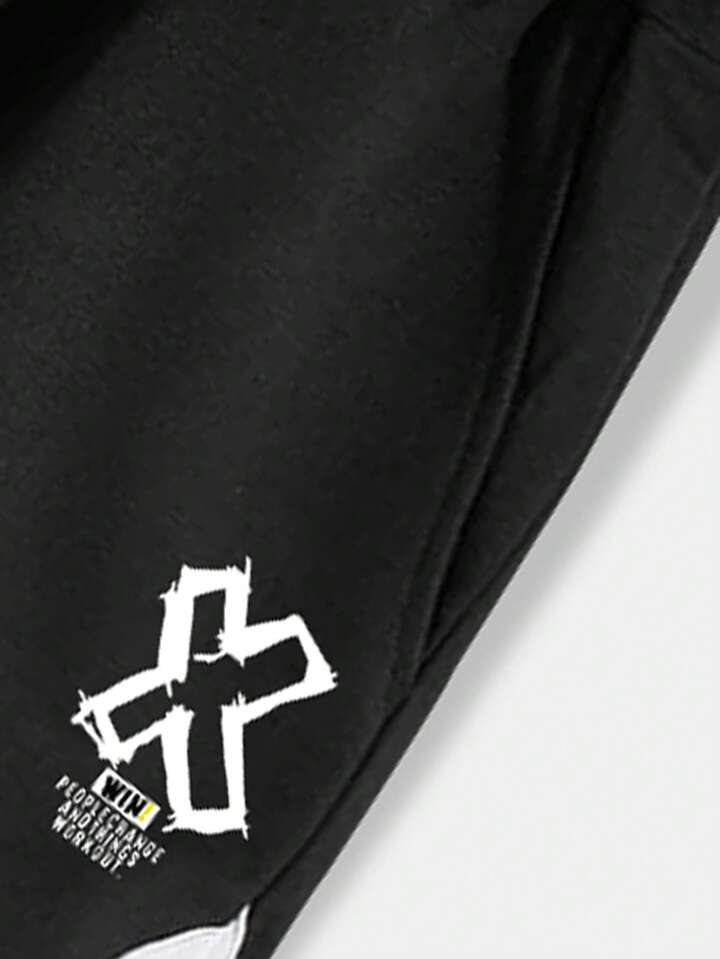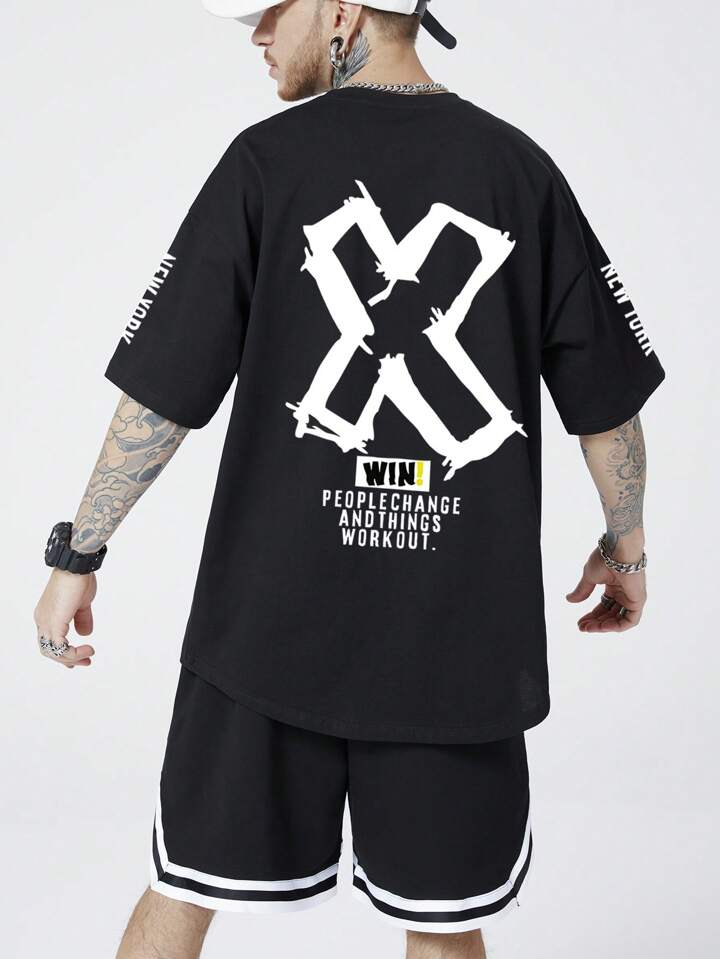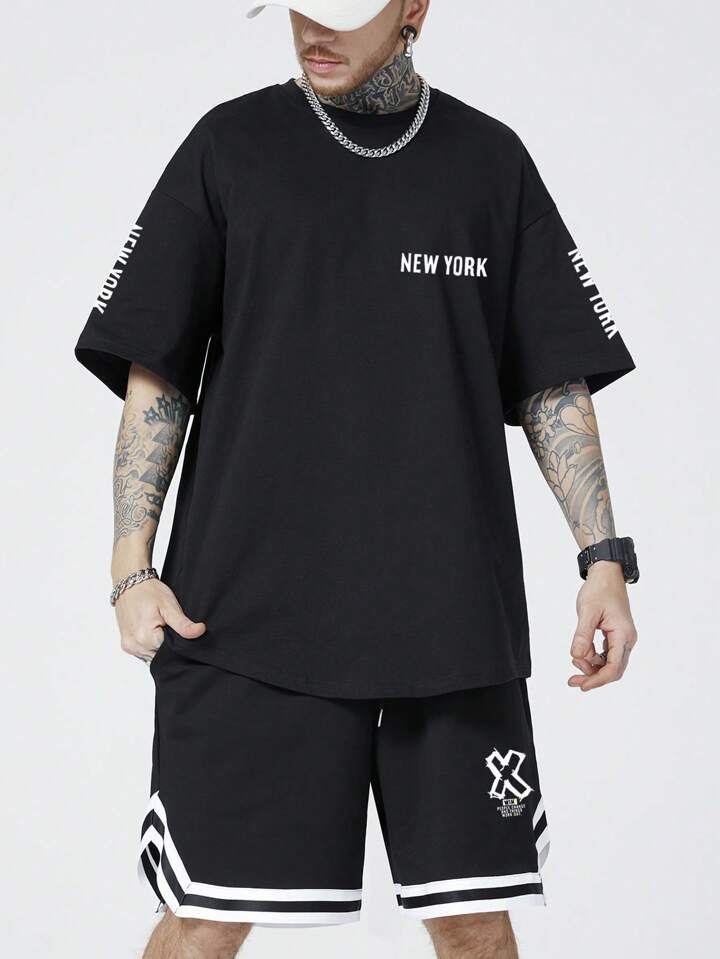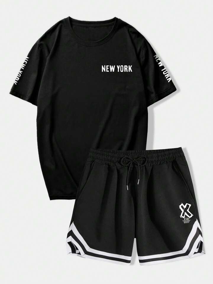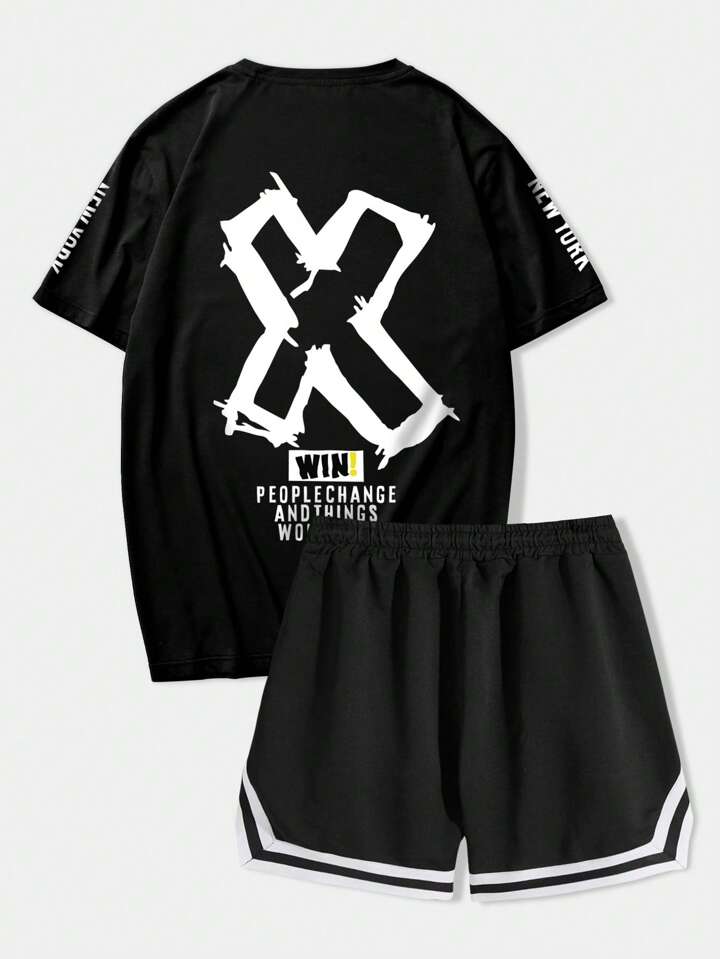 Guys Slogan Graphic Tee & Striped Trim Shorts