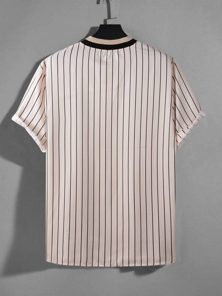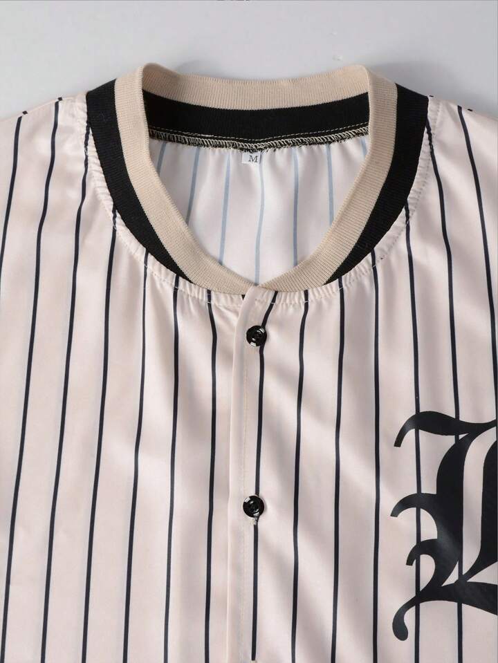 Guys Striped & Letter Graphic Baseball Collar Shirt Without Tee