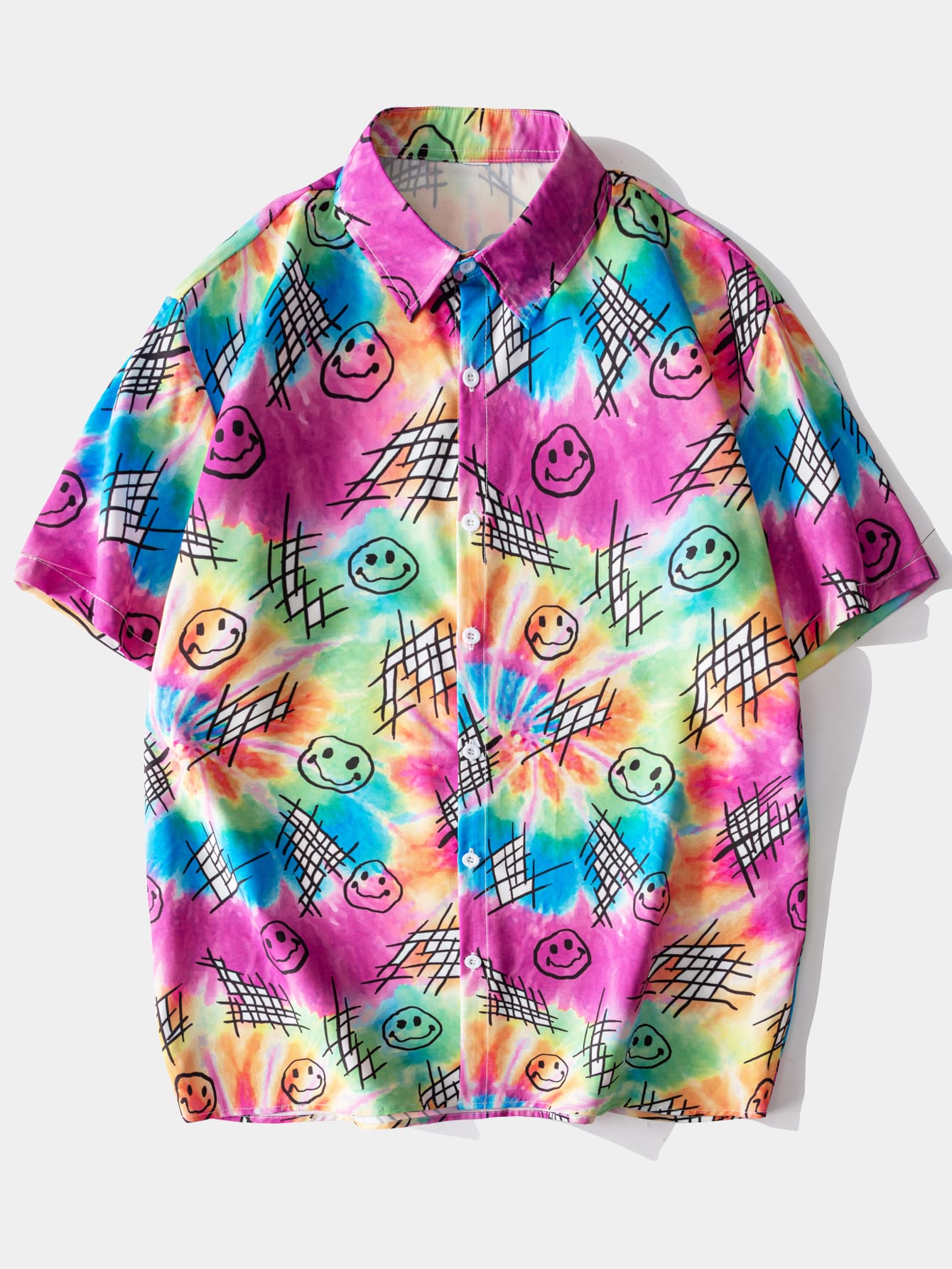 Guys Tie Dye Expression & Letter Graphic Shirt