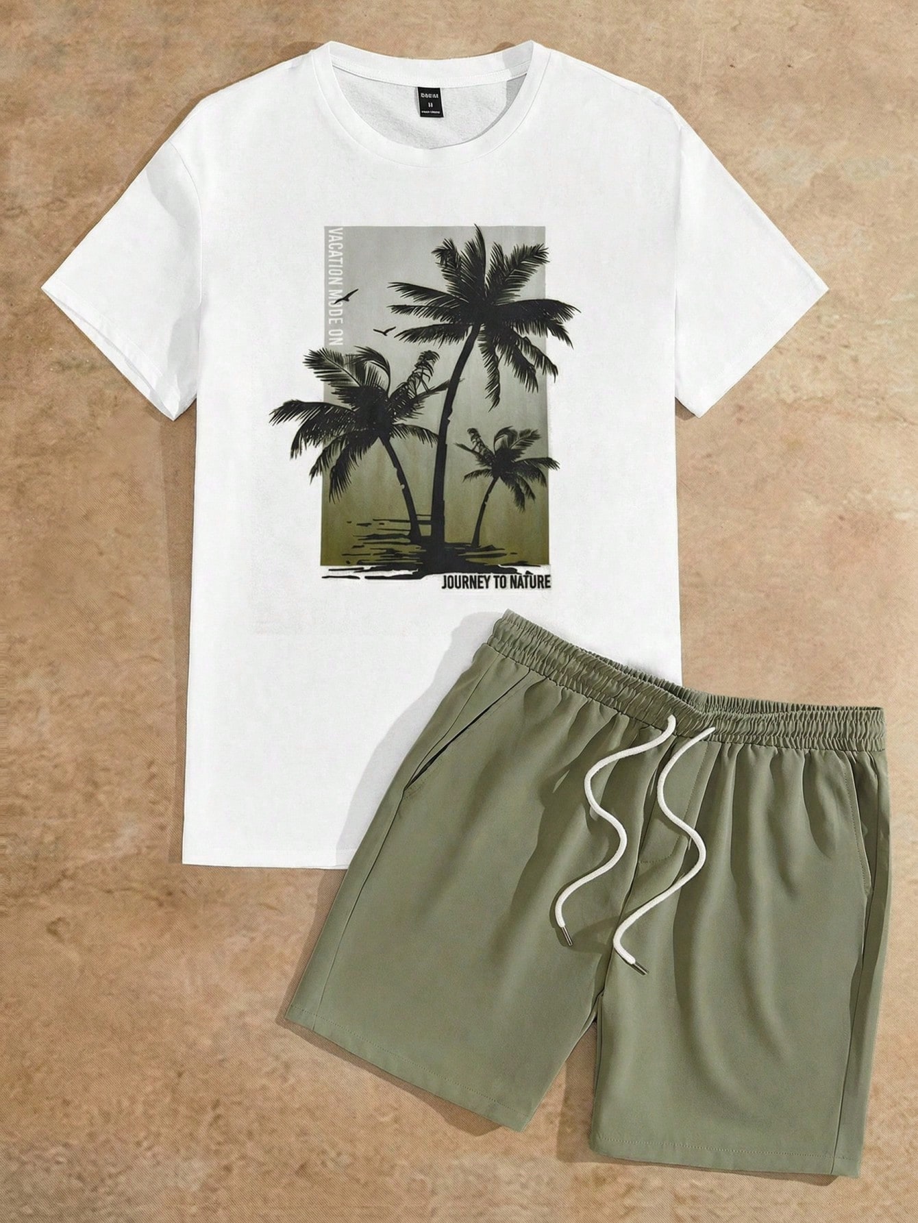 Guys Tropical Print Tee & Drawstring Waist Shorts