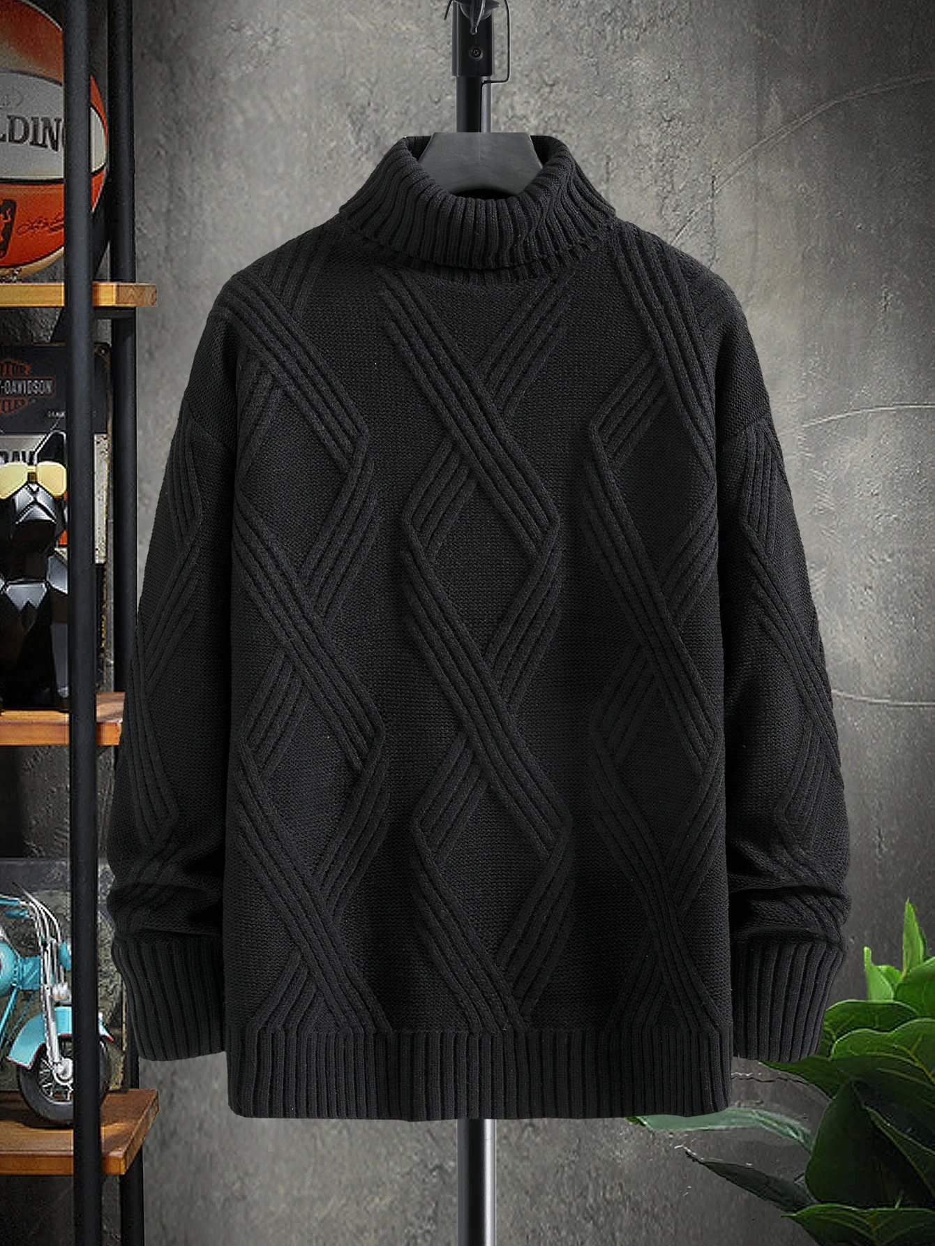 Guys Turtleneck Drop Shoulder Sweater