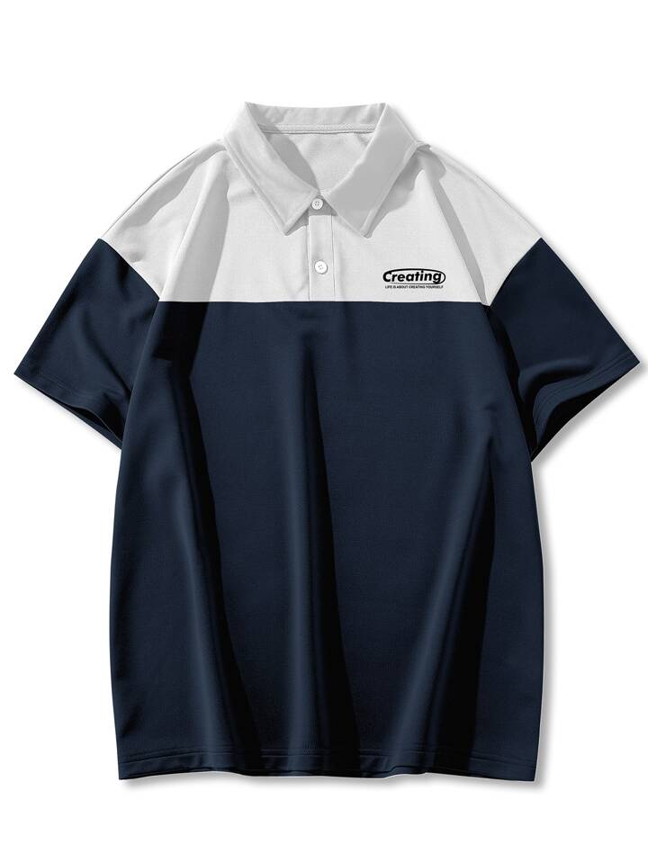 Guys Two Tone Letter Graphic Drop Shoulder Polo Shirt