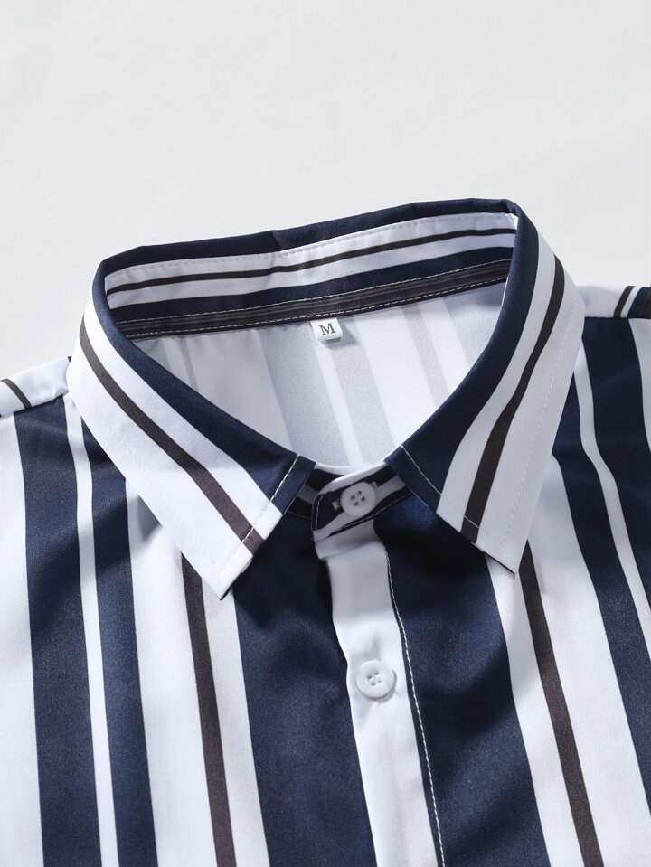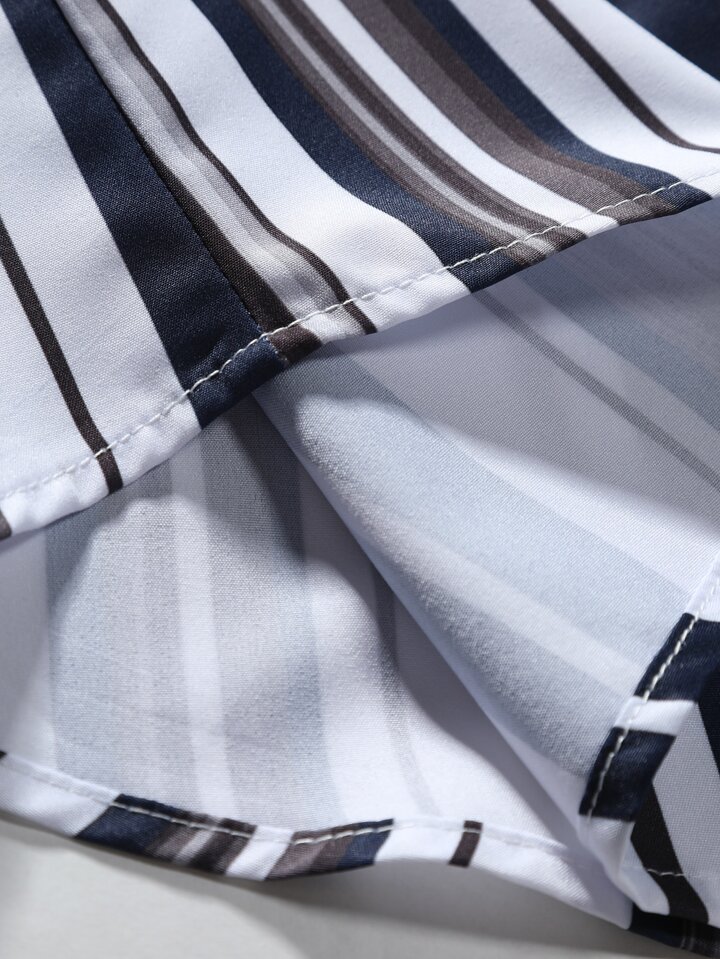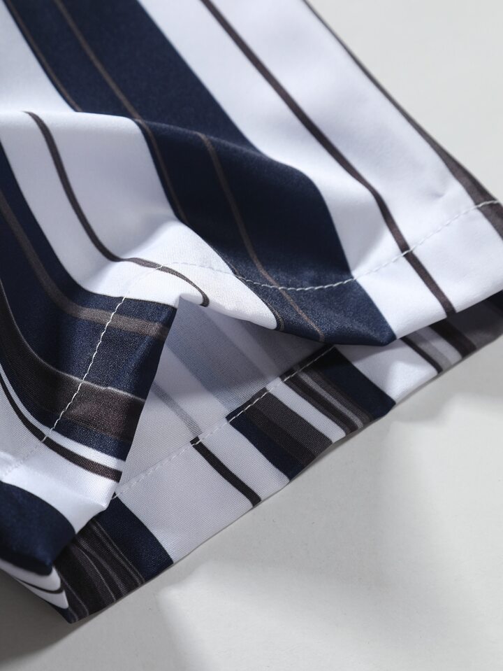 Guys Vertical Striped Shirt & Drawstring Waist Shorts Without Tee