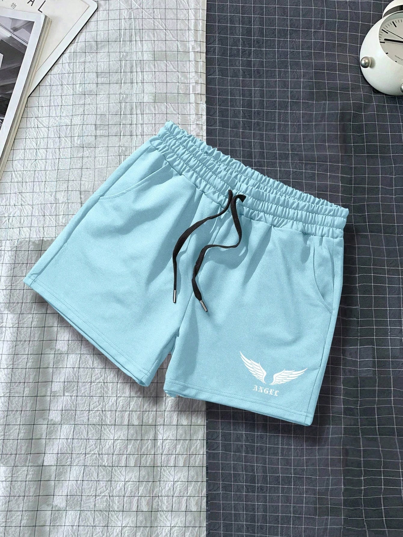 Guys Wings & Letter Graphic Drawstring Waist Shorts