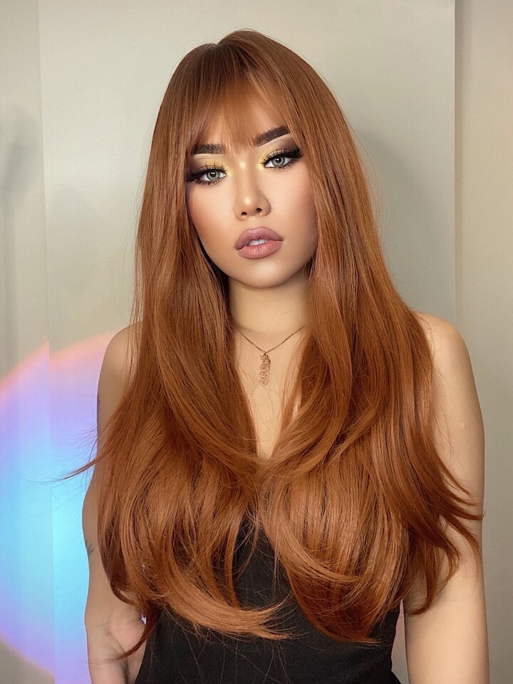 HAIRCUBE Hair Cube Length 26 Inches Natural Layered Long Curly Hair With Fringe Wig, Designed For Girls Beautiful Wig, Suitable For Women Festival Cosplay Friends Party Daily Wear Halloween Christmas Wig