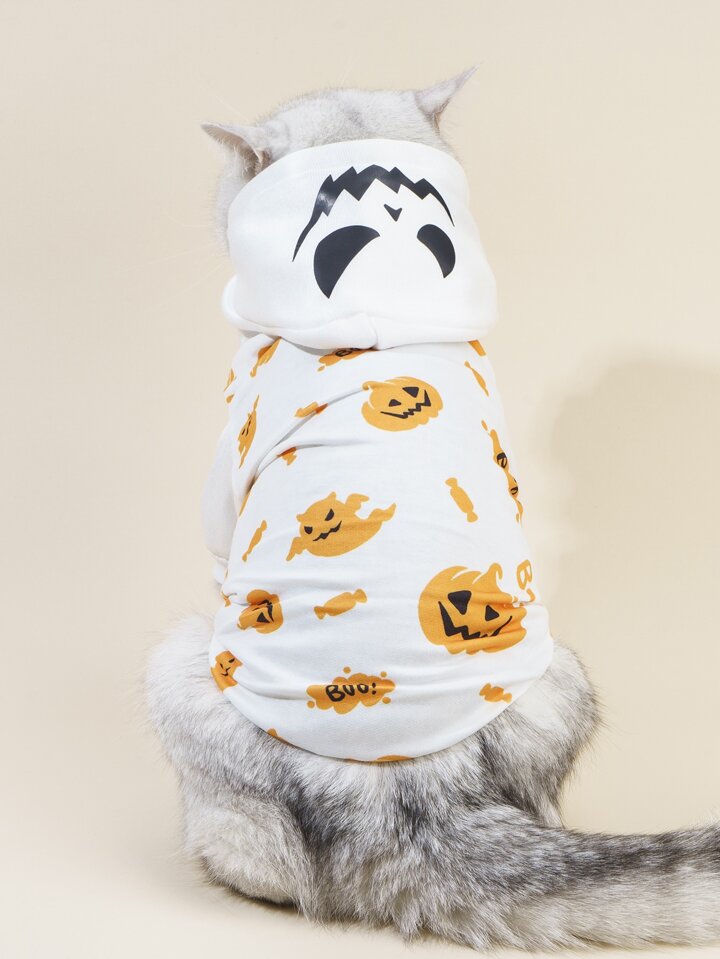 Halloween Pumpkin Print Pet Hoodie