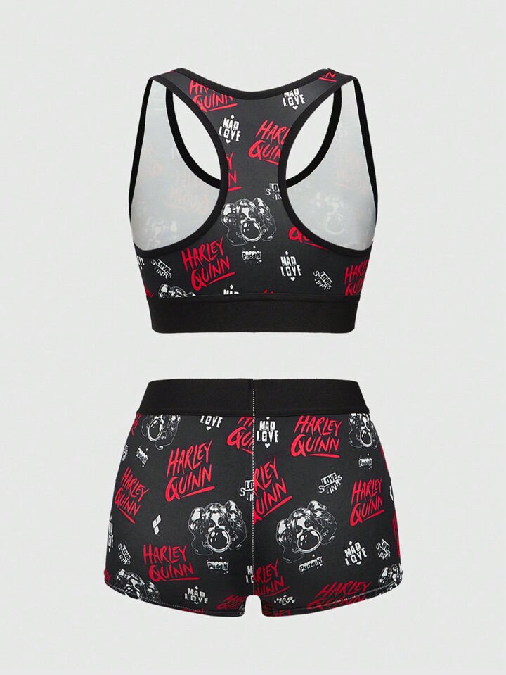 Harley Quinn | ROMWE Cartoon Character & Letter Print Racerback Sports Bra & Boxy Panty Set