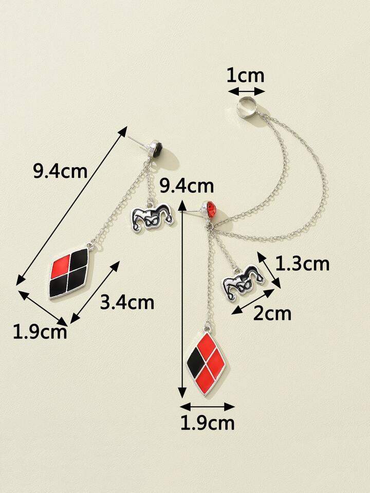 Harley Quinn | ROMWE Clown & Geometric Mismatched Drop Earrings