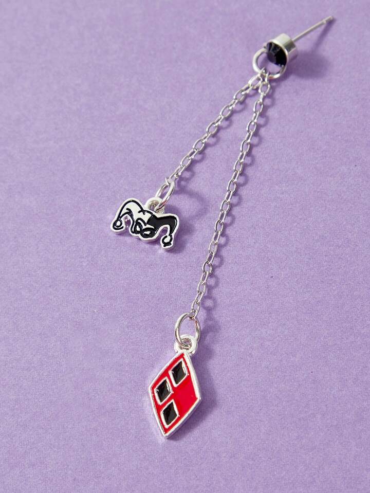 Harley Quinn | ROMWE Geometric Joker Pattern Long Chain Rhinestone Earrings