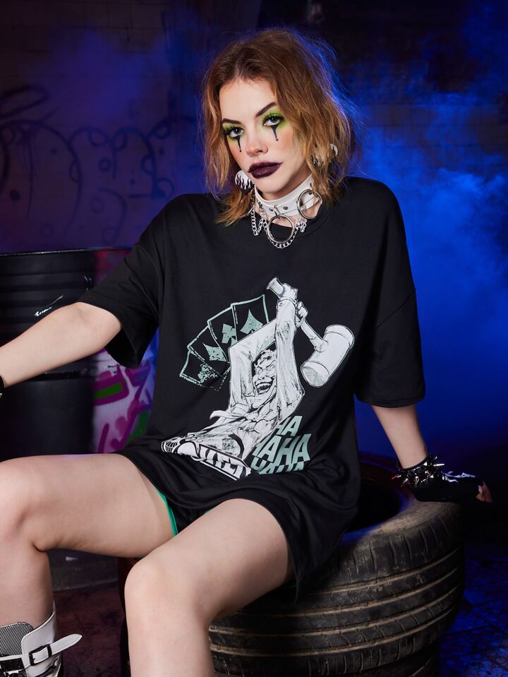 Harley Quinn | ROMWE Letter Figure Graphic Oversized Tee