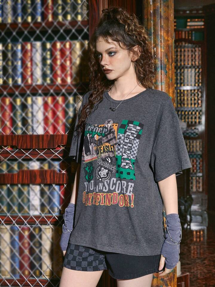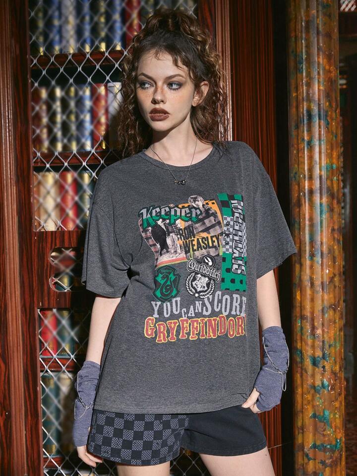 Harry Potter | ROMWE Letter & Figure Graphic Drop Shoulder Tee