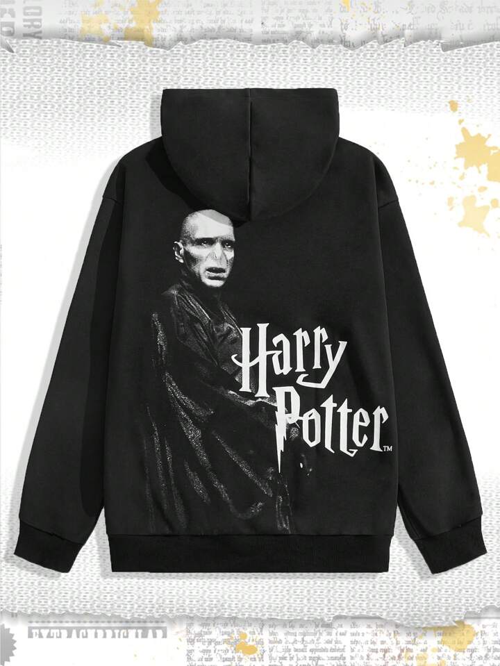 Harry Potter | ROMWE Men Character And Letter Printed Hooded Long Sleeve Sweatshirt