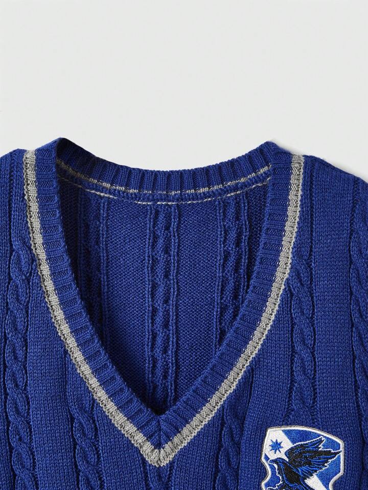 Harry Potter | ROMWE Plus Eagle Embroidered Contrast Trim Knitted Sweater Vest With Letters