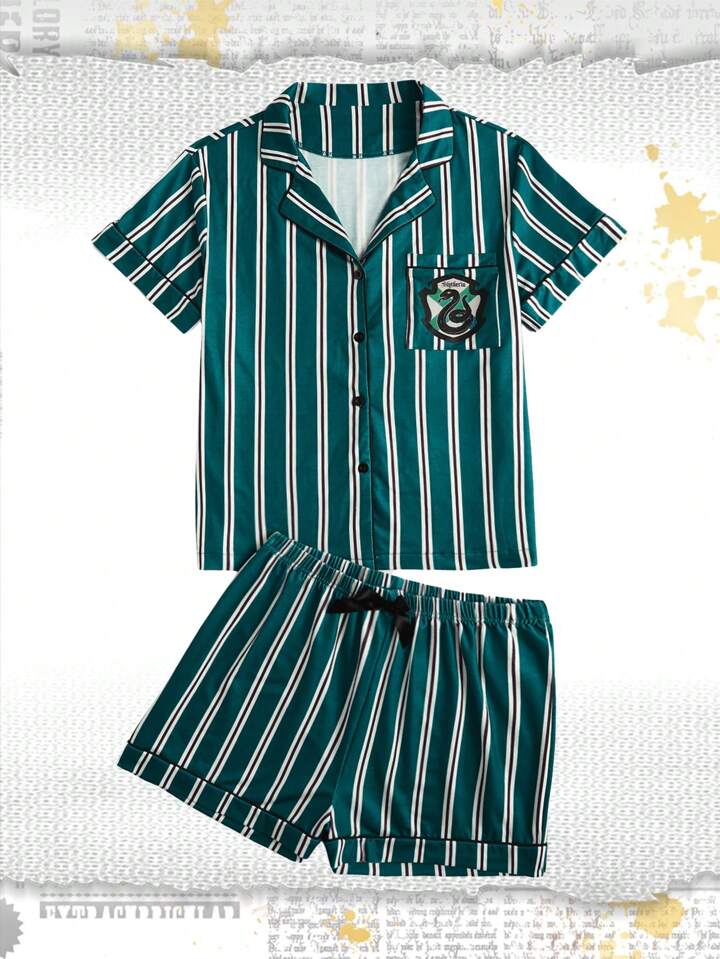 Harry Potter | ROMWE Striped & Cartoon Graphic PJ Set