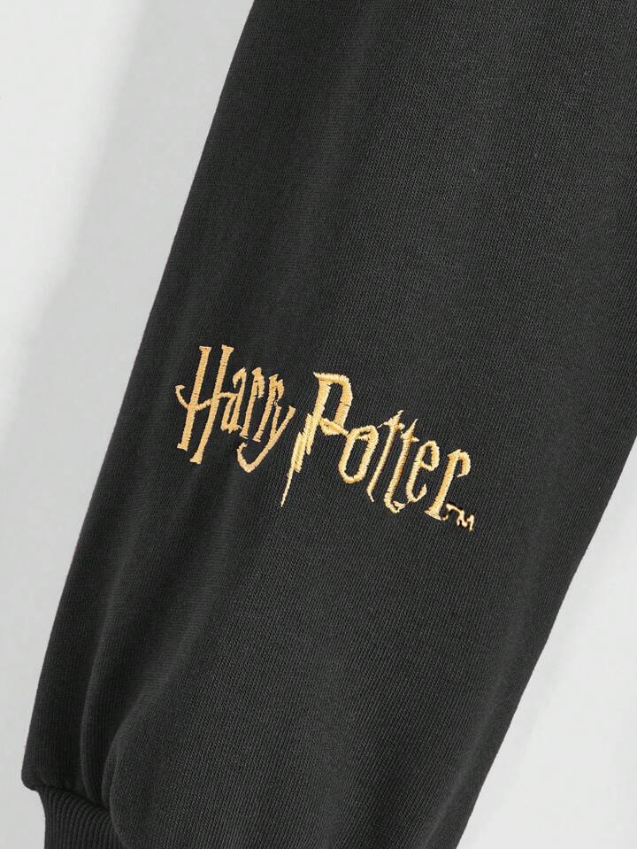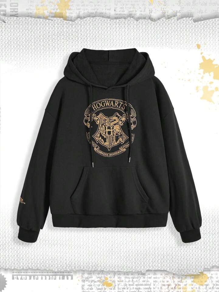 Harry Potter | ROMWE Women Embroidered Graphic Loose Hooded Sweatshirt Graduation,Back To School Outfits,Graduation,Teacher Outfits For Women,Back To School