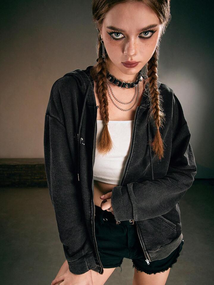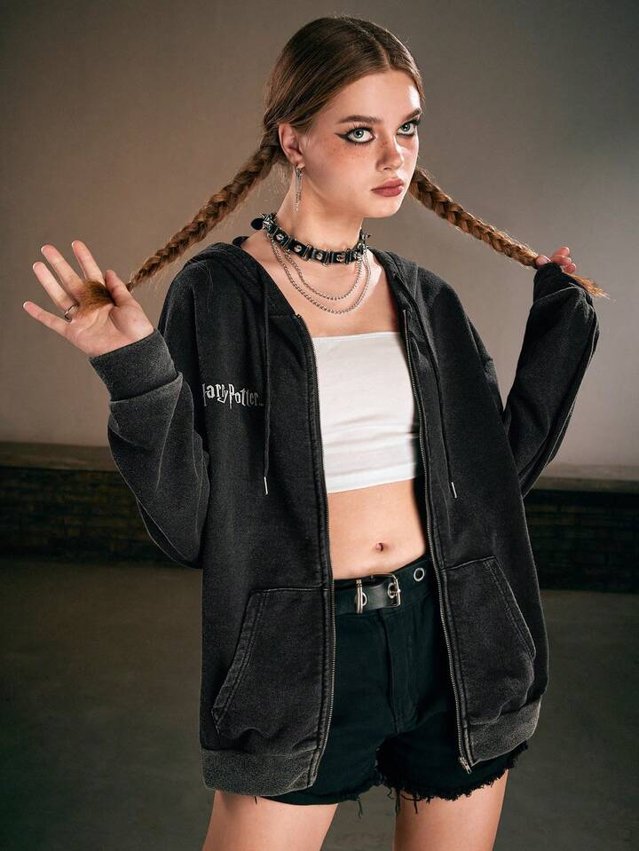 Harry Potter | ROMWE Women's Letter Printed Zipper Hoodie