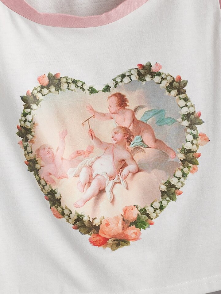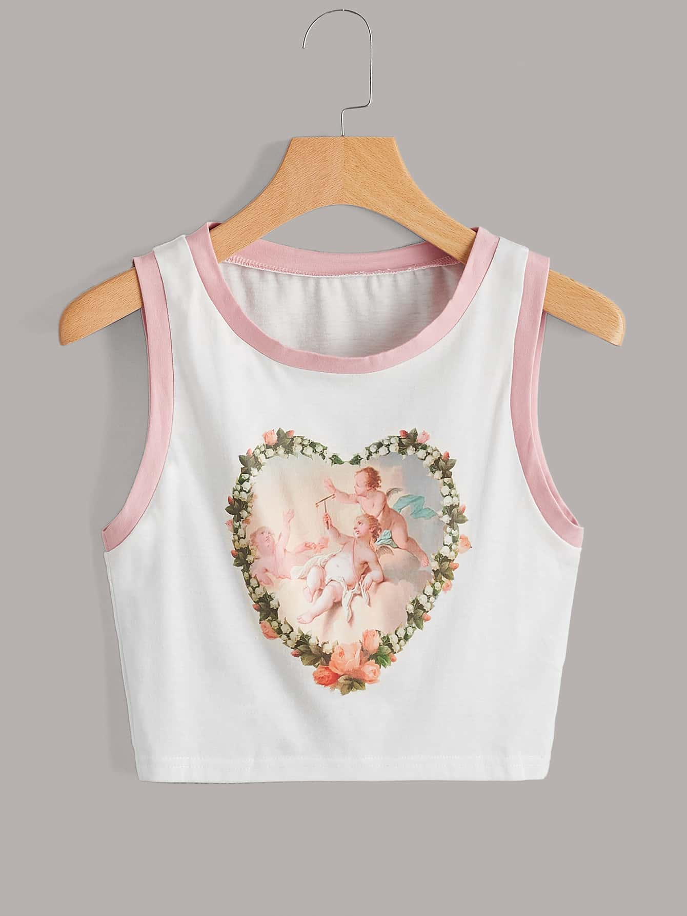 Heart & Angel Print Ringer Tank Top