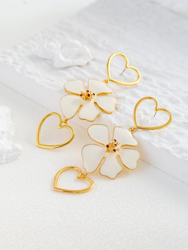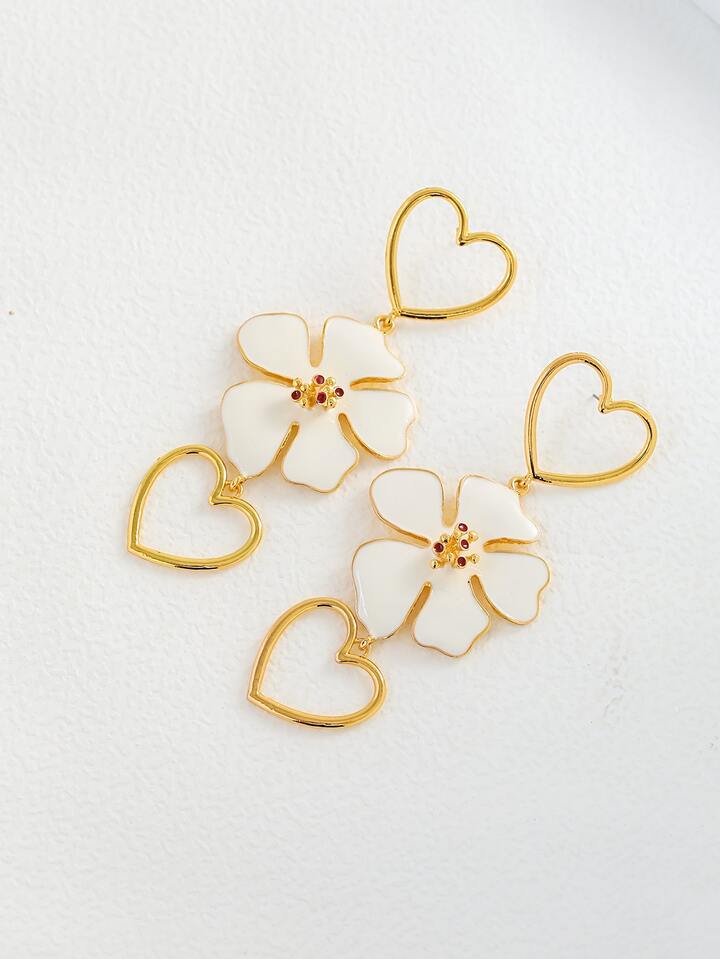 Heart & Flower Decor Drop Earrings