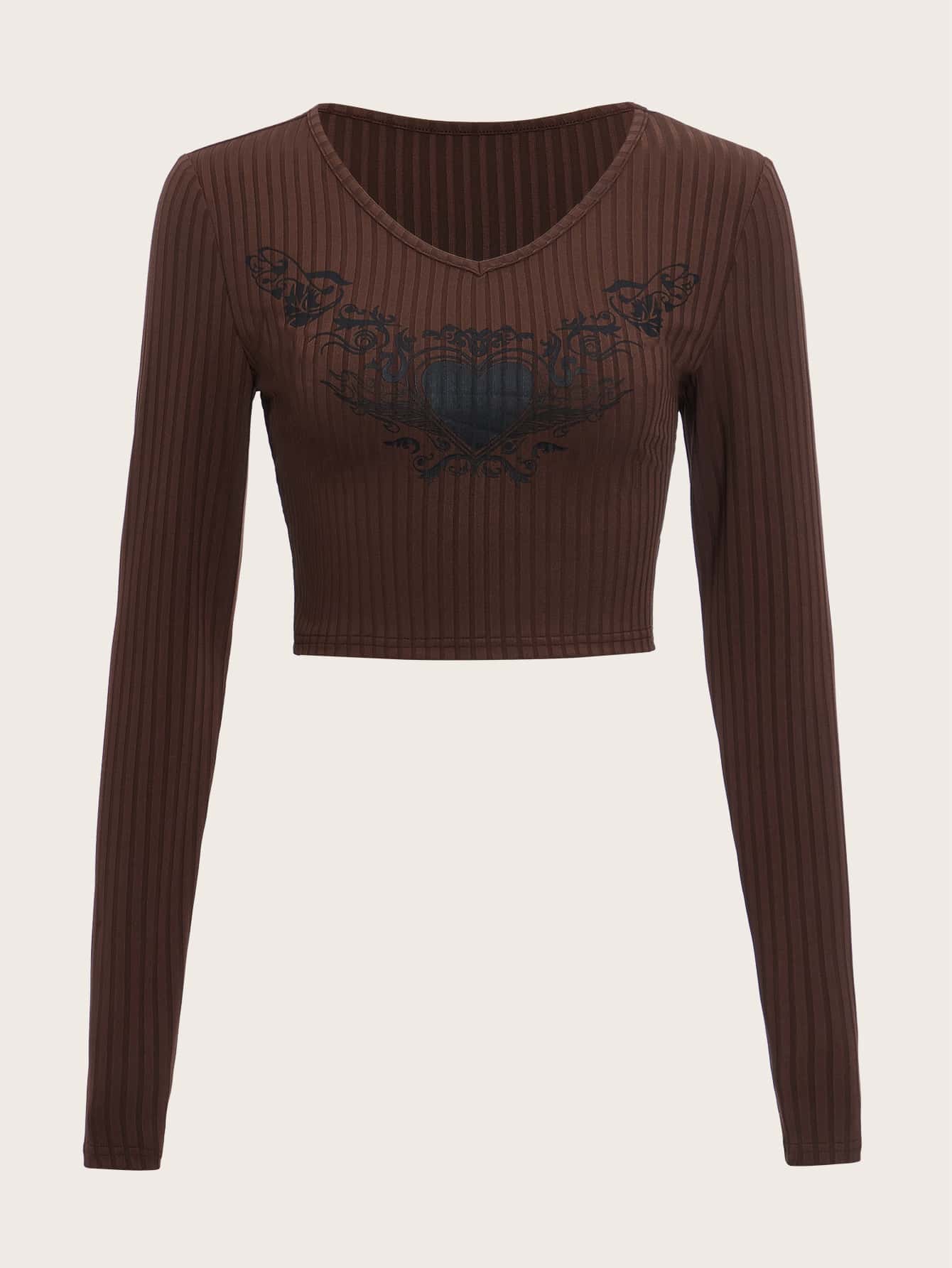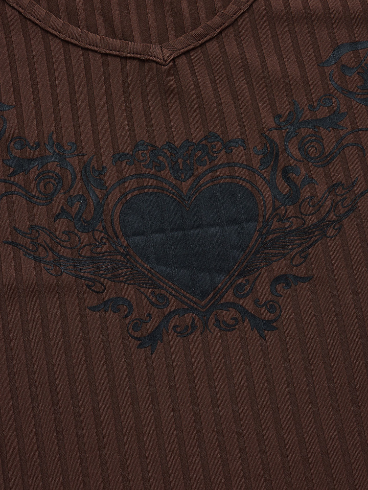 Heart Graphic Ribbed Crop Tee
