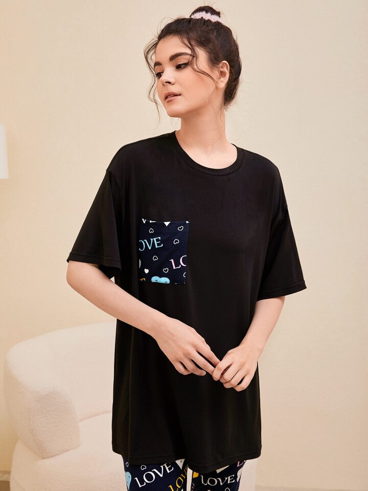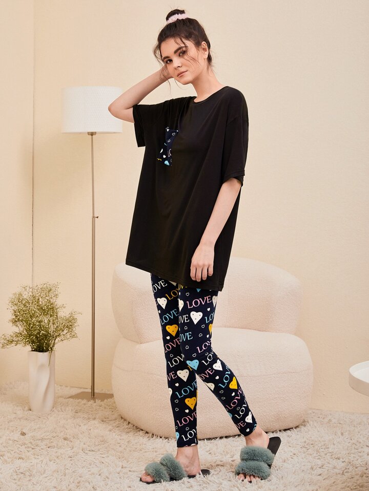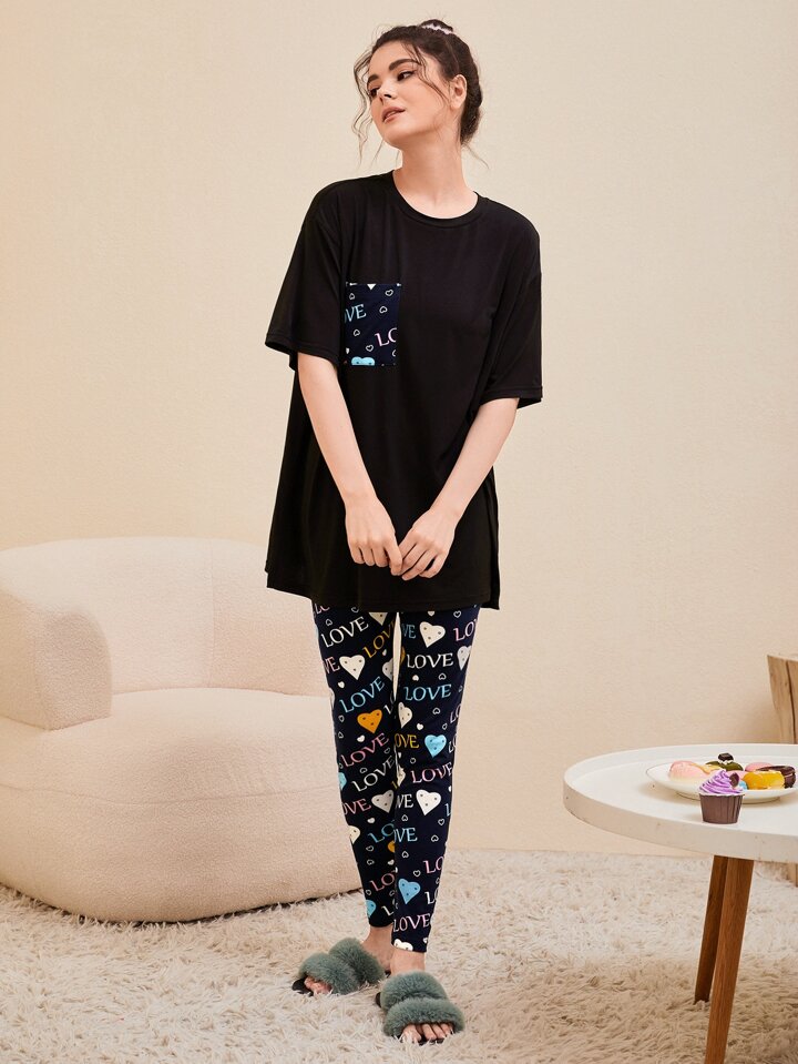 Heart & Letter Graphic Drop Shoulder PJ Set