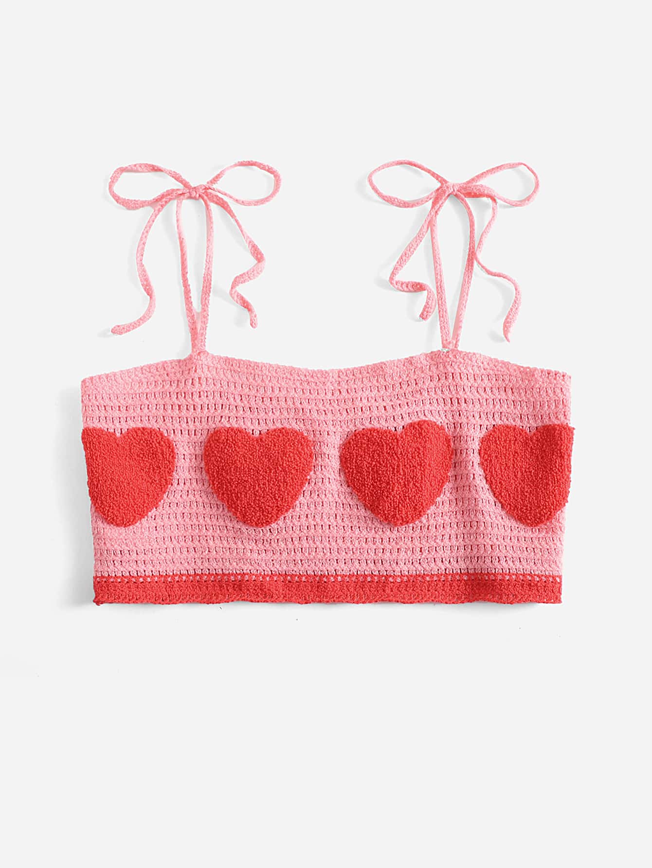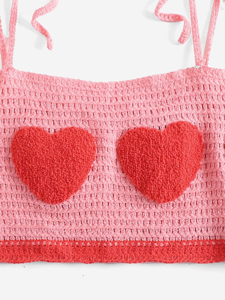 Heart Pattern Tie Shoulder Knit Top