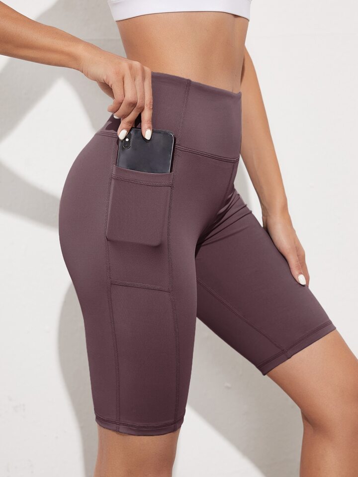 High Stretch Wide Band Waist Sports Shorts With Phone Pocket