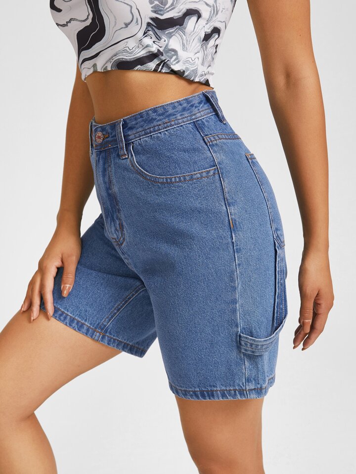 High Waist Bermuda Denim Shorts