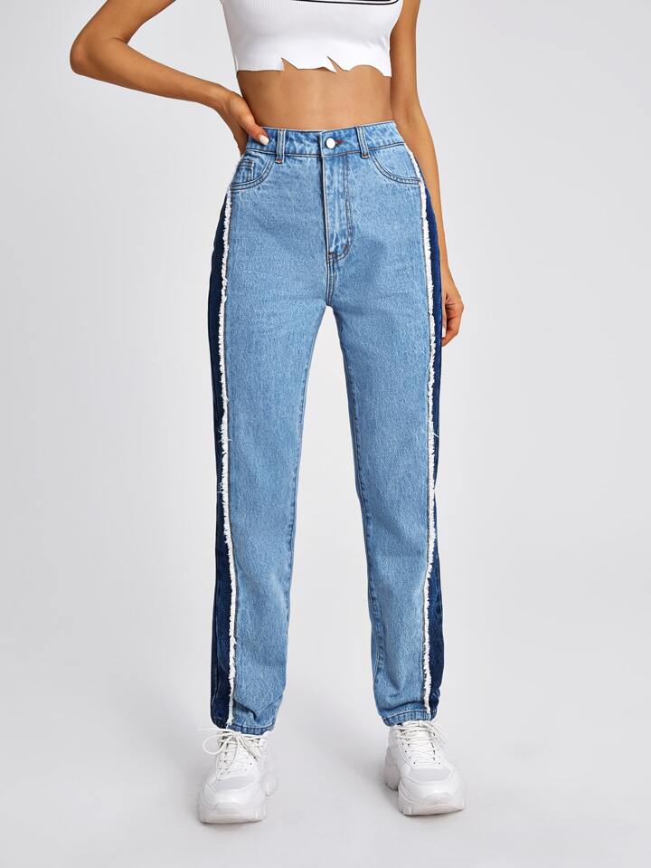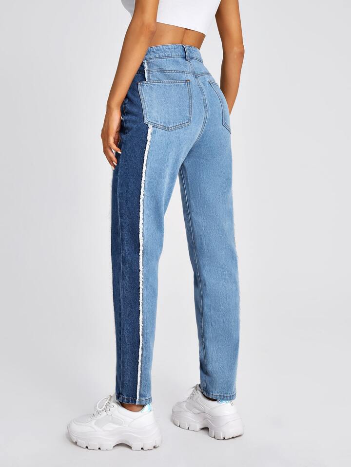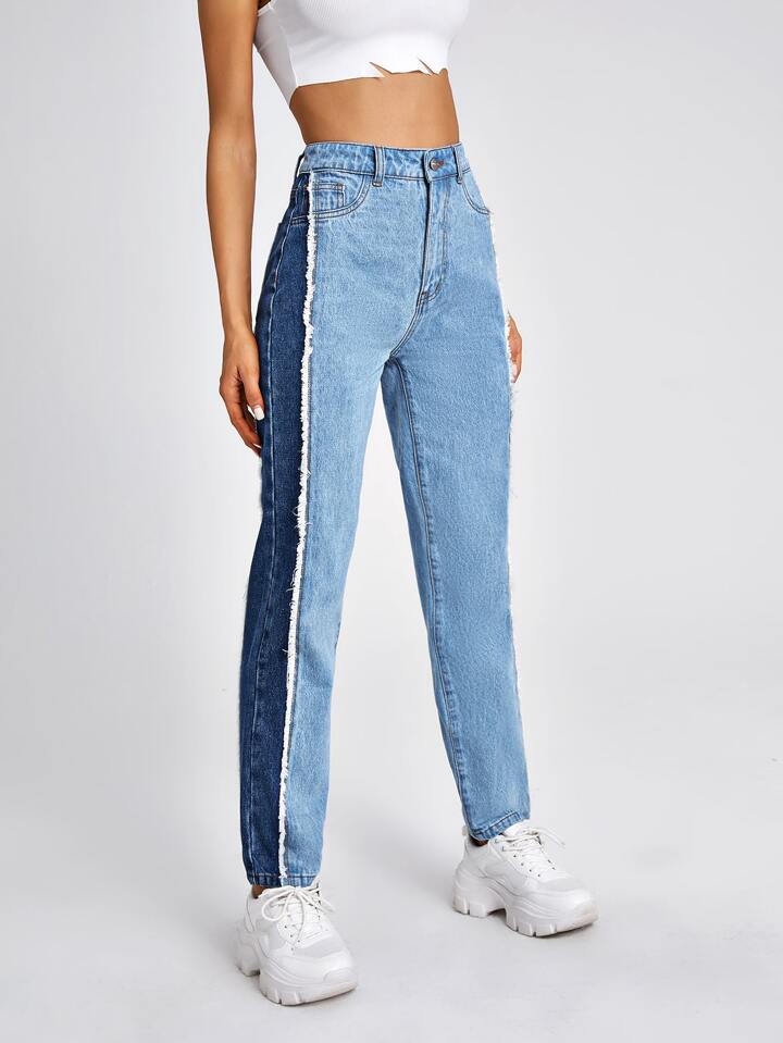High Waist Color Block Mom Jeans
