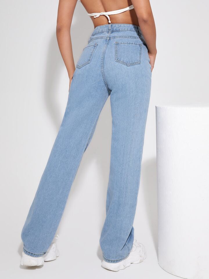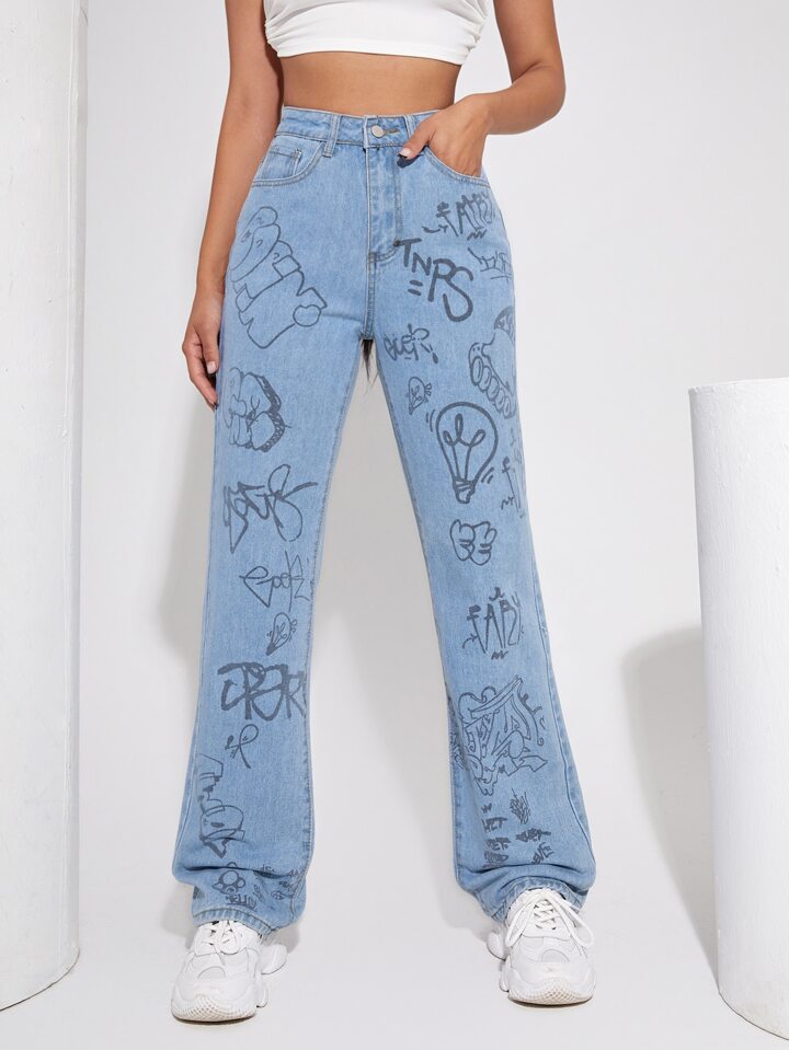 High Waist Letter & Cartoon Graphic Jeans