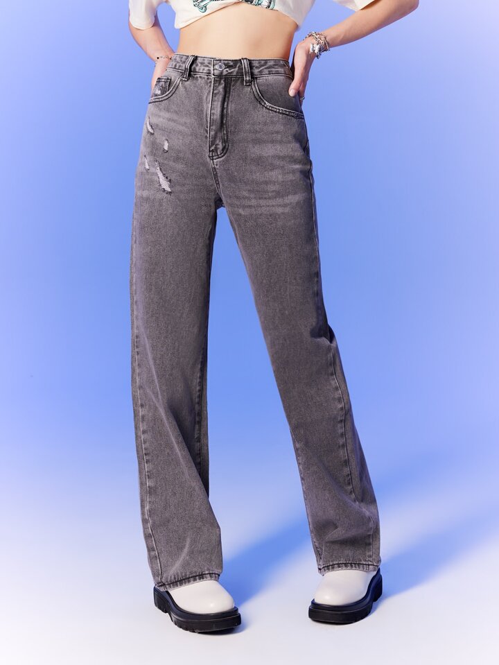 High Waist Ripped Straight Leg Jeans
