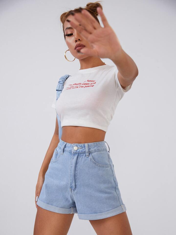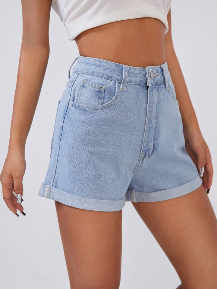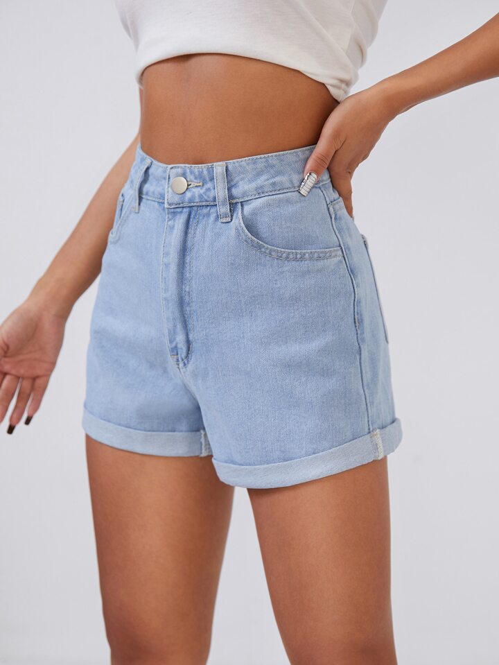 High Waist Roll Up Hem Denim Shorts