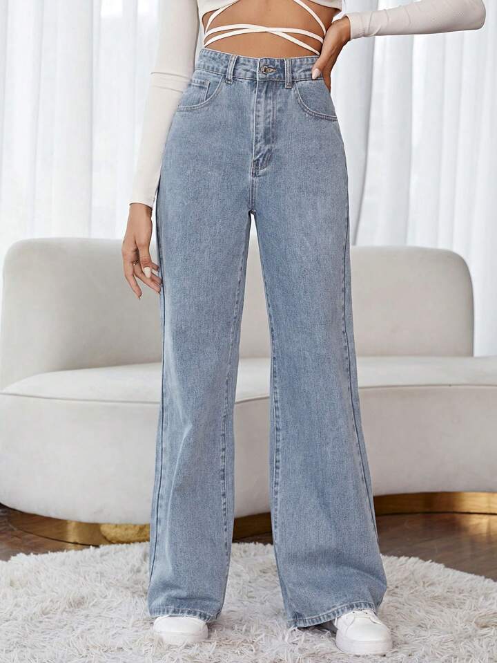 High Waist Wide Leg Floral Embroidery Jeans Winter Flower Vacation Casual