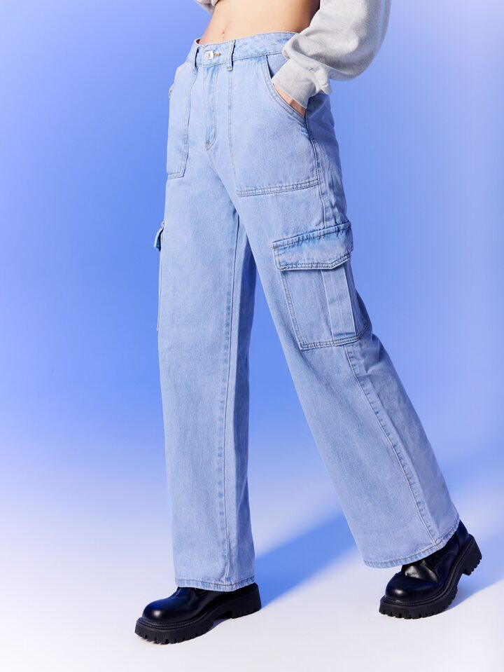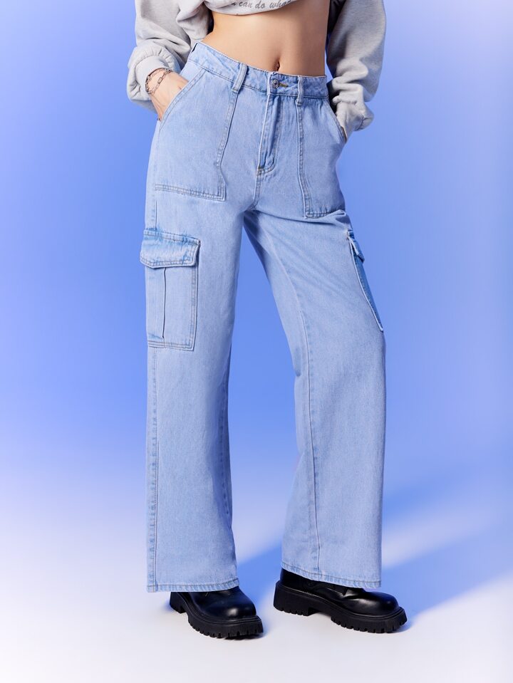 High Waisted Flap Pocket Cargo Jeans Y2k